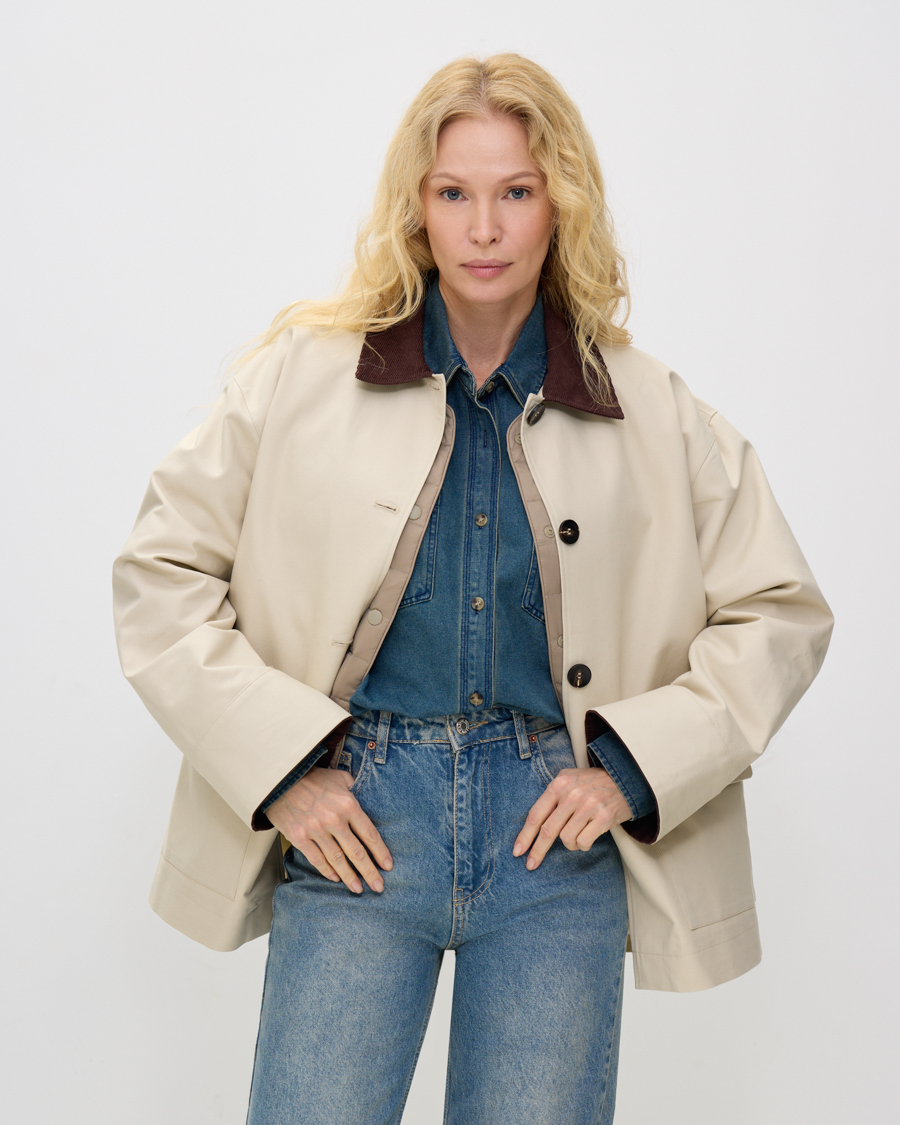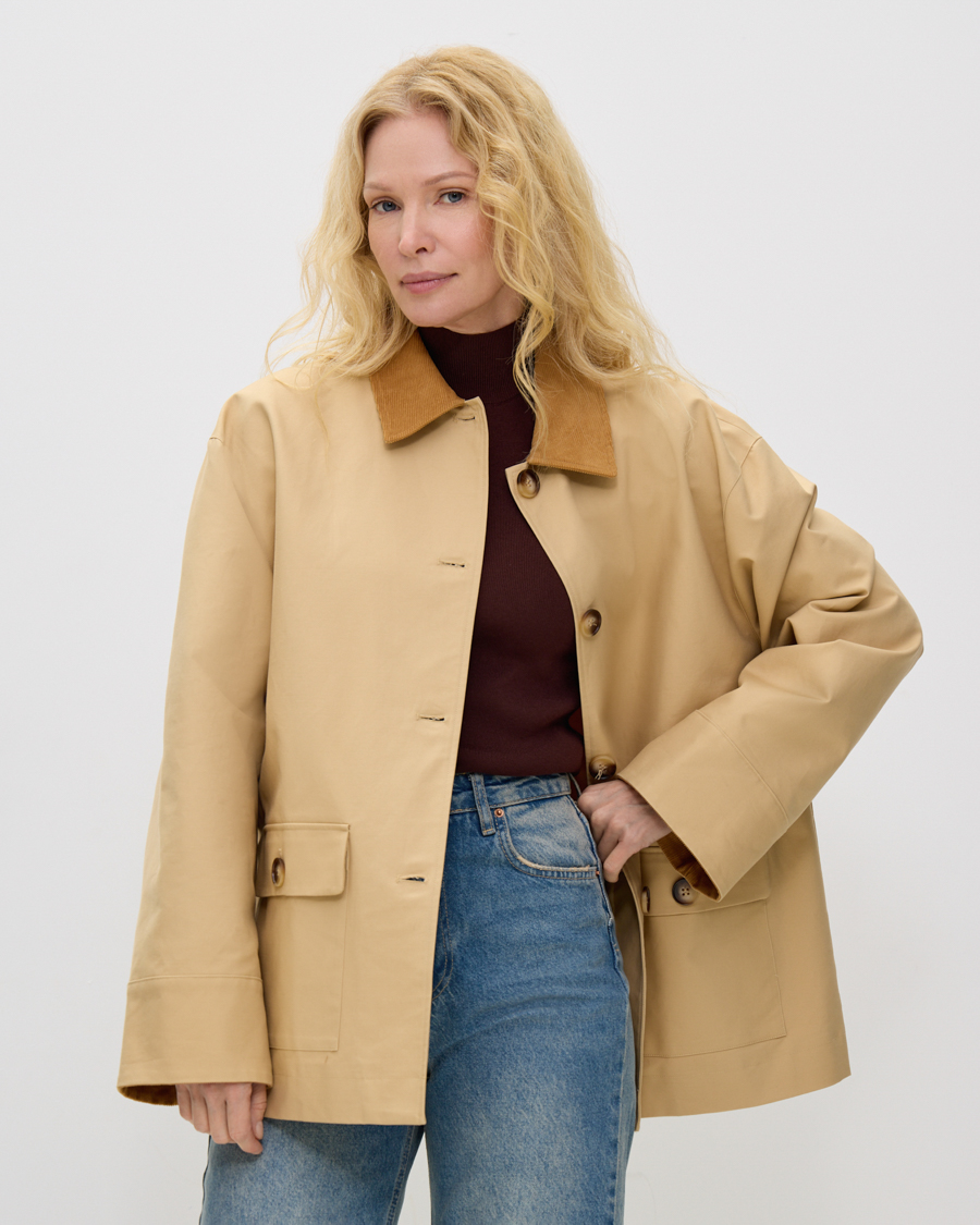 Хлопковая куртка с вельветовой отделкой, бежевый