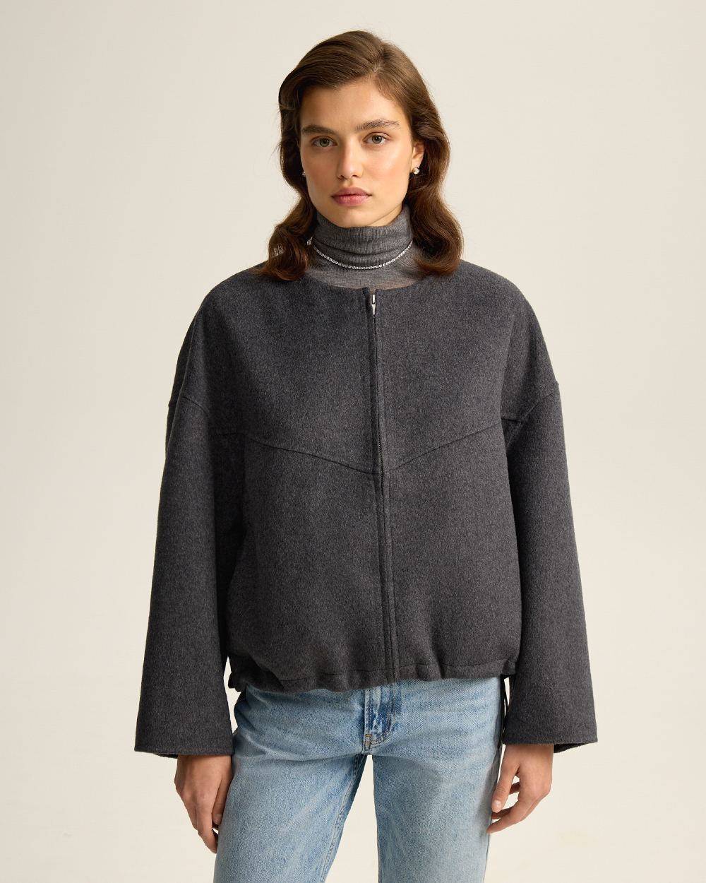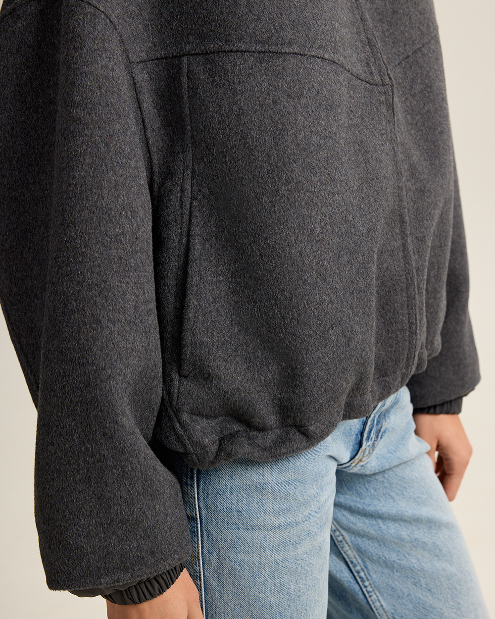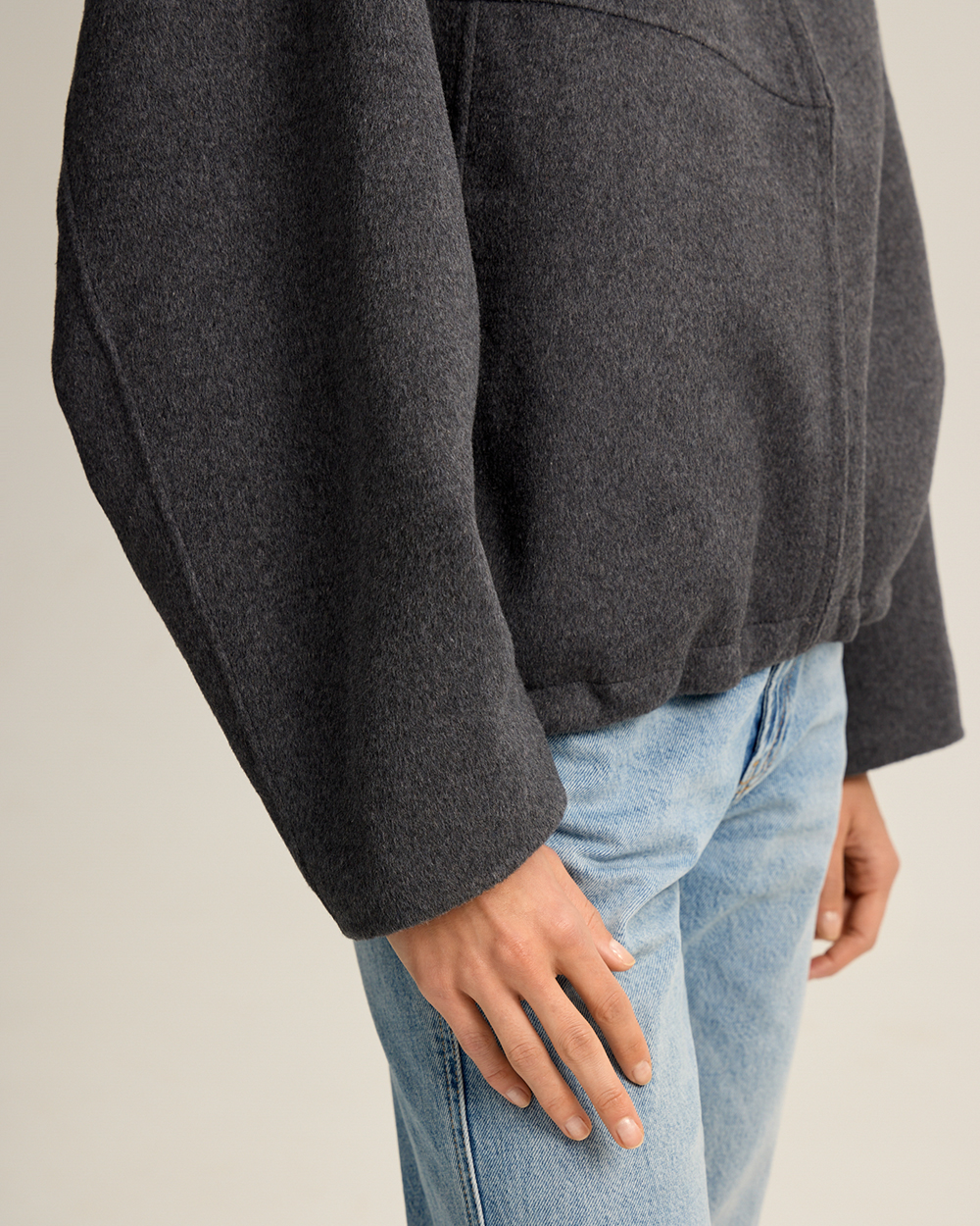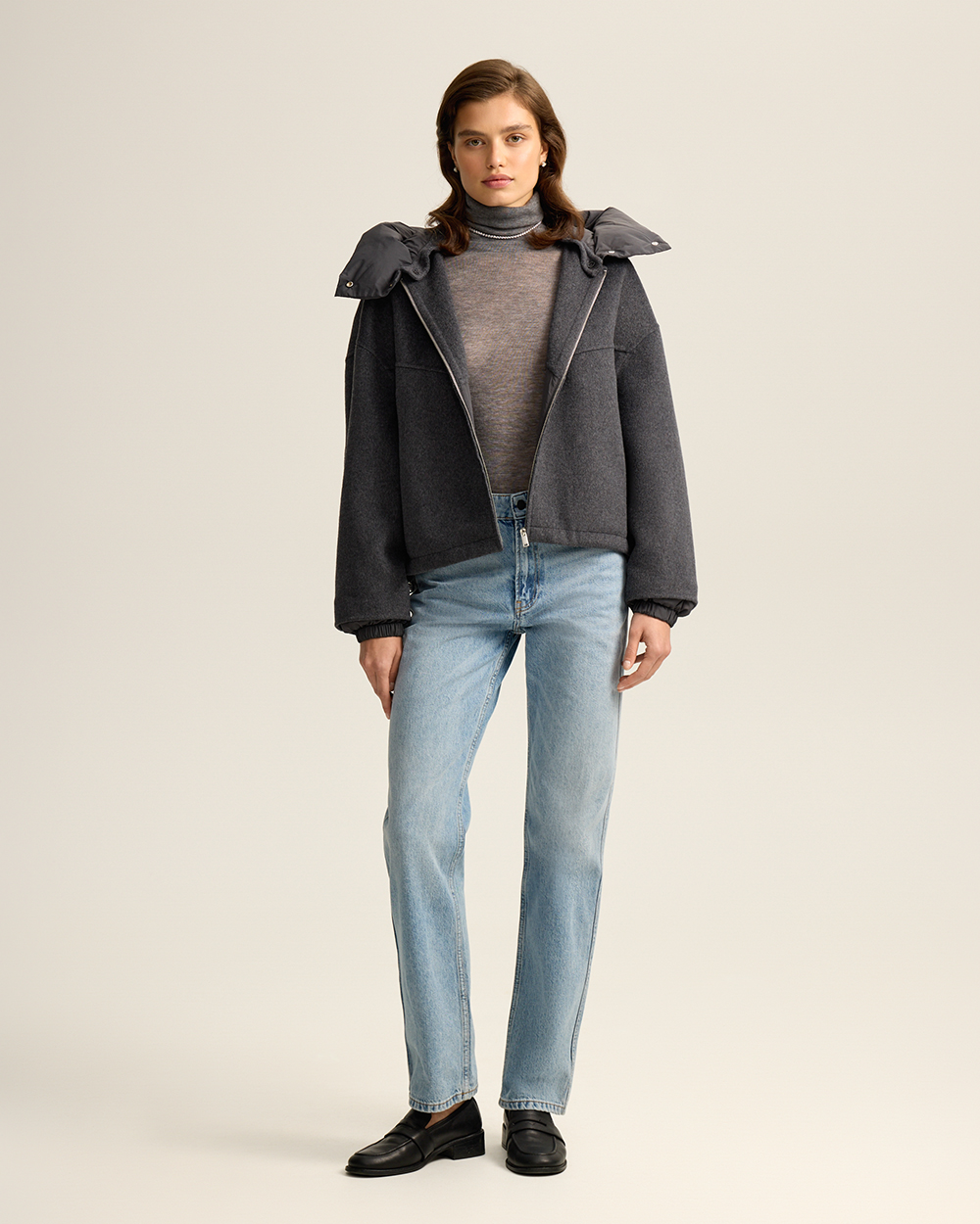 Удобно, когда вещи могут выполнять в гардеробе сразу несколько функций. Мы наделили этой сверх-способностью новую куртку из шерстяной пальтовой ткани. Она может выступать в гардеробе как куртка с капюшоном и как шерстяной бомбер: утепленный капюшон на кнопках и манжеты отстегиваются.