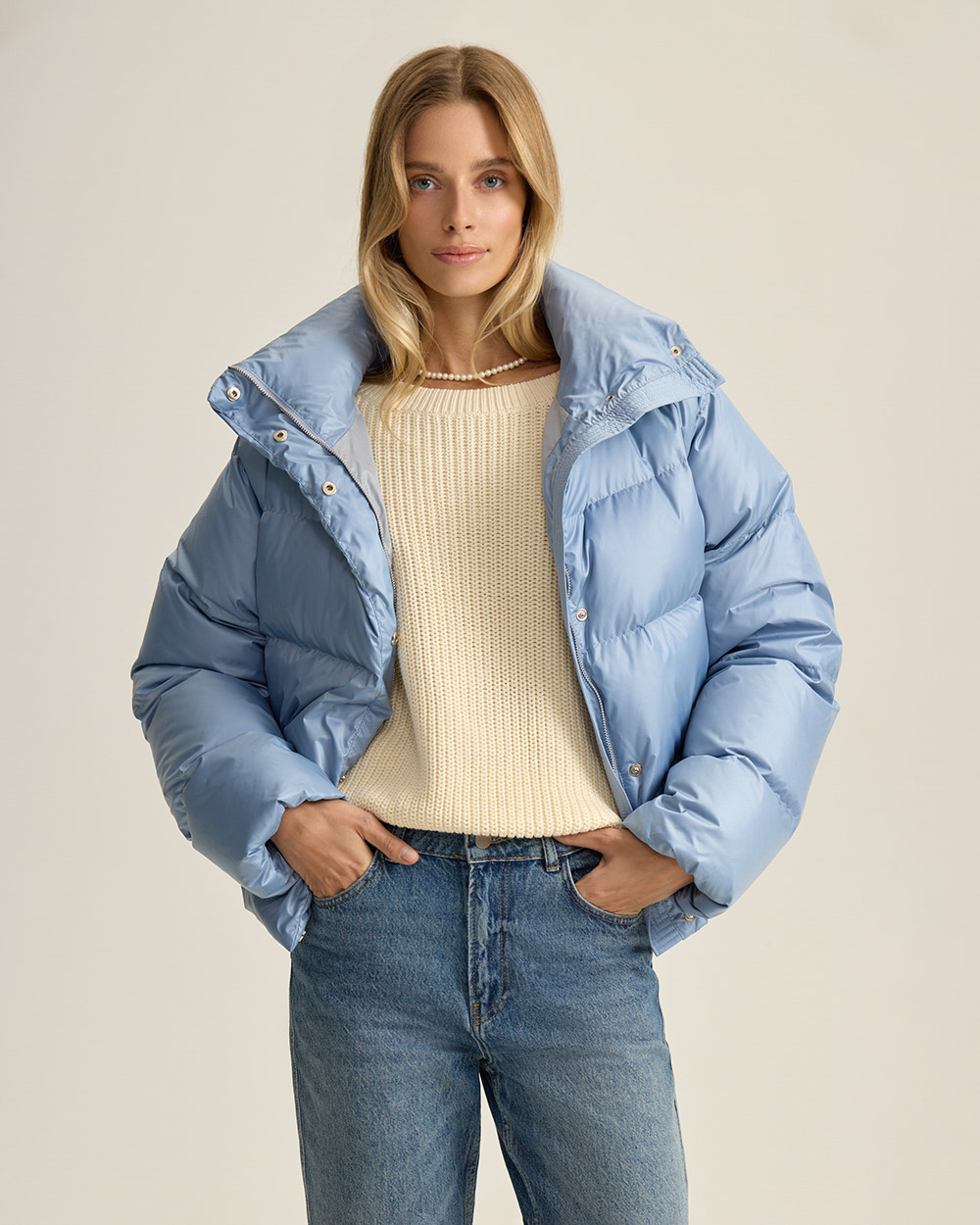 Лёгкая и тёплая стеганая куртка на натуральном наполнителе (90% пух, 10% перо). Ткань с влагоотталкивающим покрытием защищает от непогоды. Модель с высоким воротником-стойкой и удобными передними карманами. Низ регулируется корд-системой с фиксаторами, что позволяет настроить посадку под себя. Застёжка на молнию и кнопки. На подкладке.