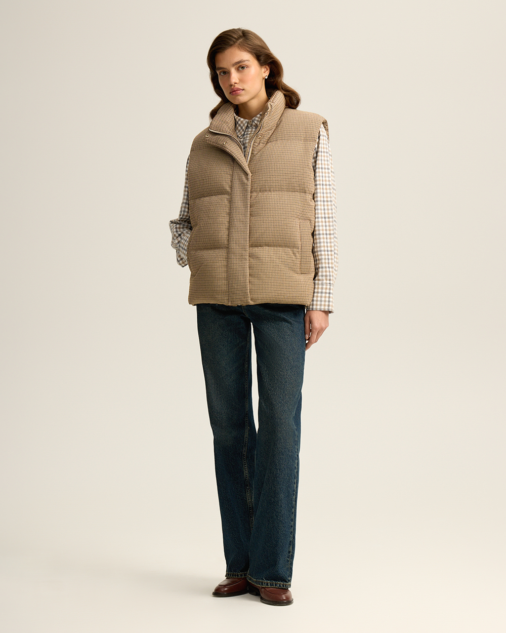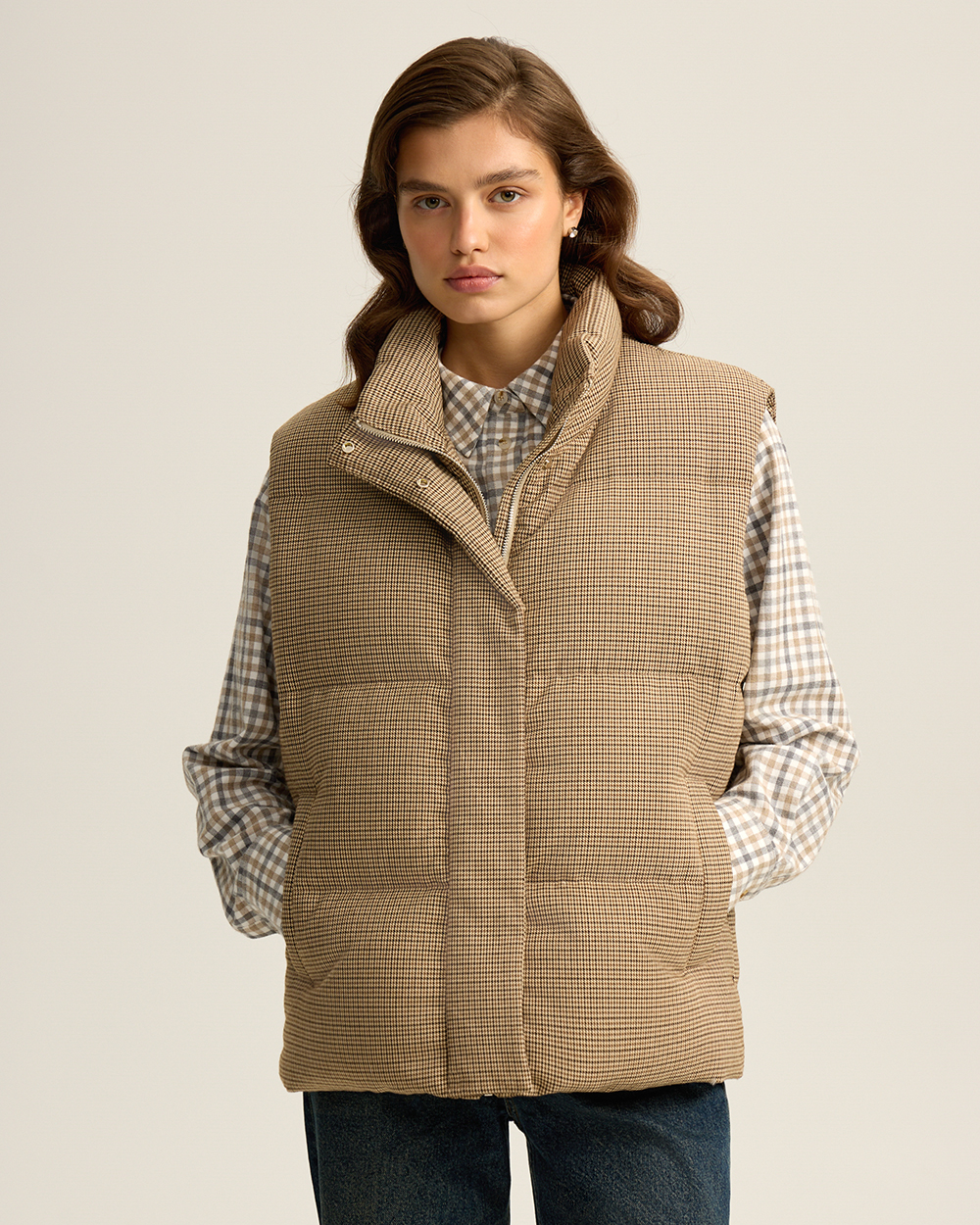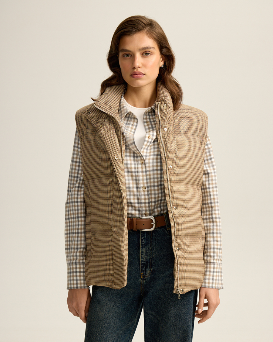 Жилет, в котором комфорт встречается с элегантностью. Выполнен из ткани в мелкую «гусиную лапку», он сохраняет классику даже в спортивной категории. Наполнитель из пуха (90%) и пера (10%) дарит легкость и надежное тепло. Воротник-стойка, карманы и застежка на молнию с кнопками делают модель практичной и универсальной. Идеальный верх для многослойных образов в городе и за его пределами.
