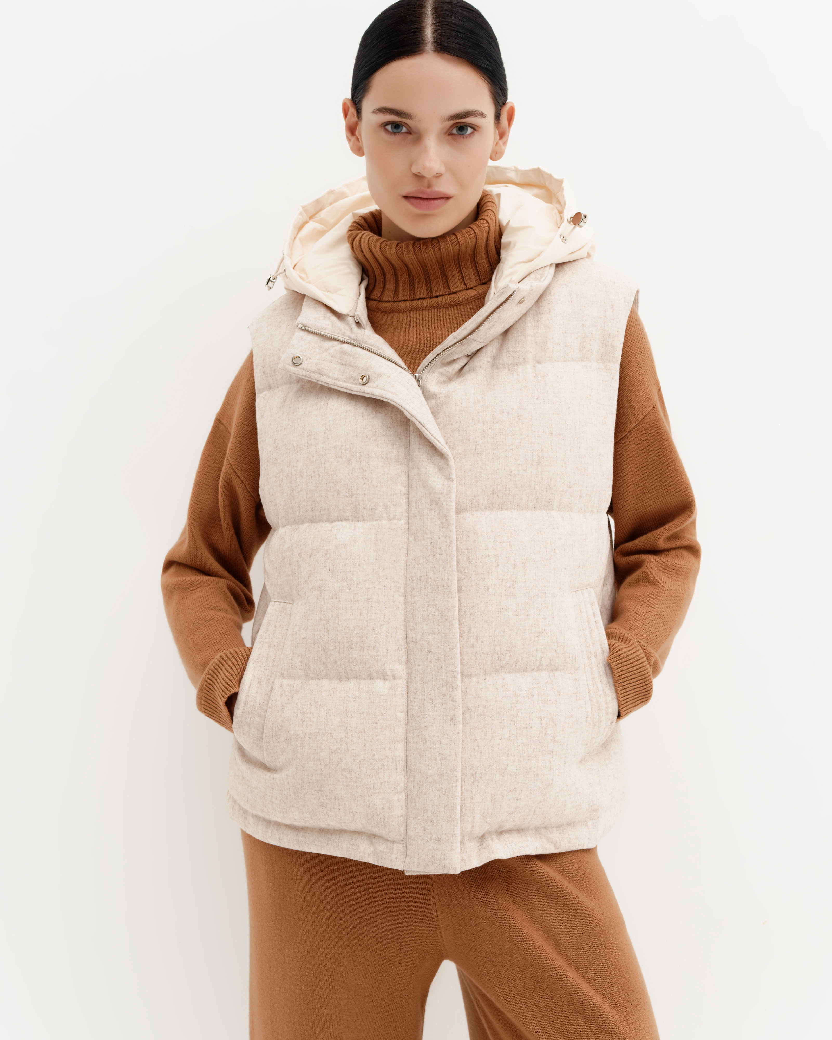 Жилет из пальтовой ткани, с отстегивающимся капюшоном, светло-бежевый