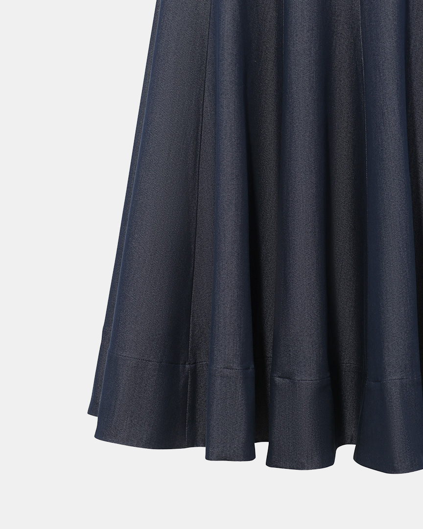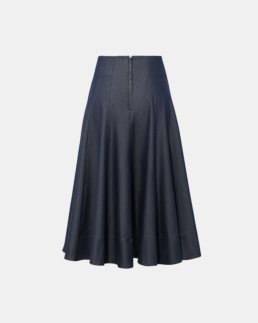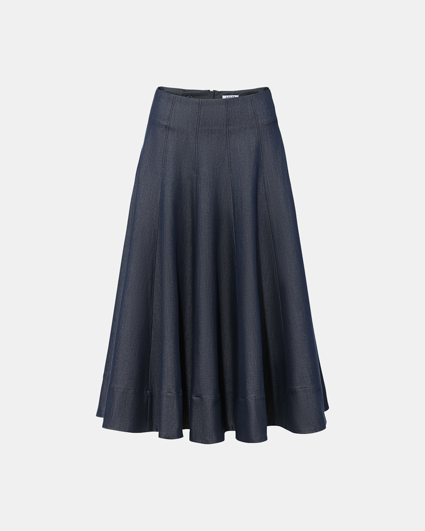 Расклешенная юбка миди из денима с эффектом "сырой" варки. Застежка на молнию. Швы контрастной нитью. Соберите комплект с джинсовой рубашкой из нашей коллекции.
