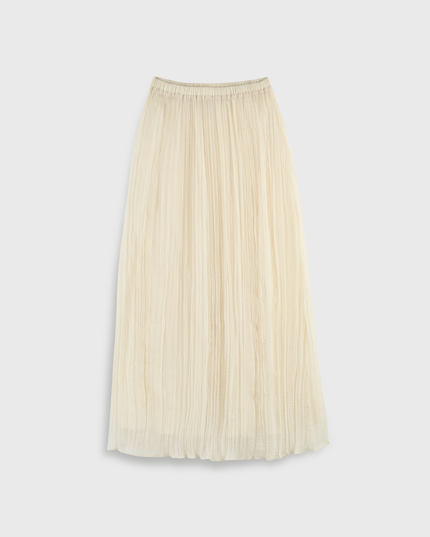Юбка из фактурной жатой ткани, на подкладке, молочный