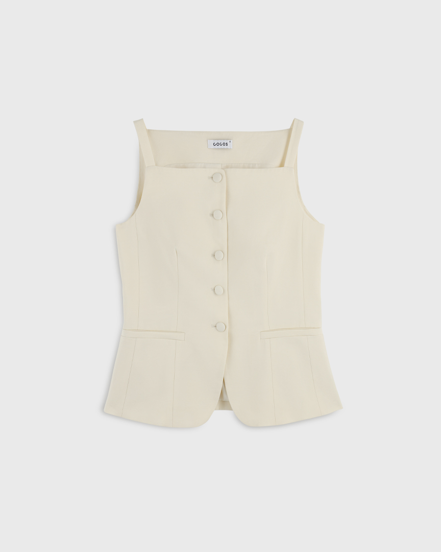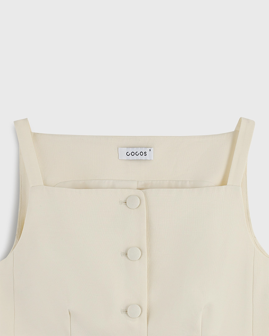Приталенный топ жилет на пуговицах, из тенселя, молочный