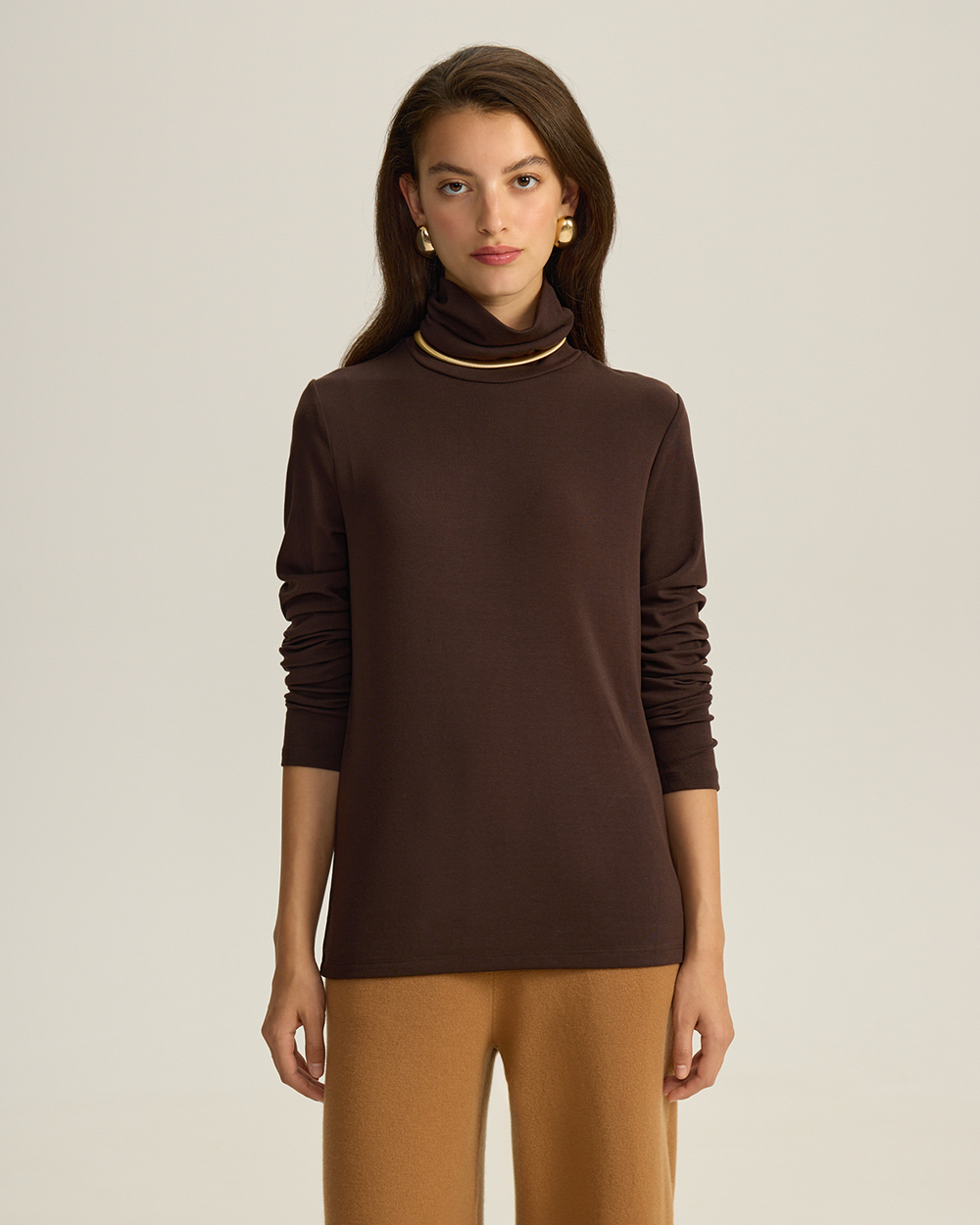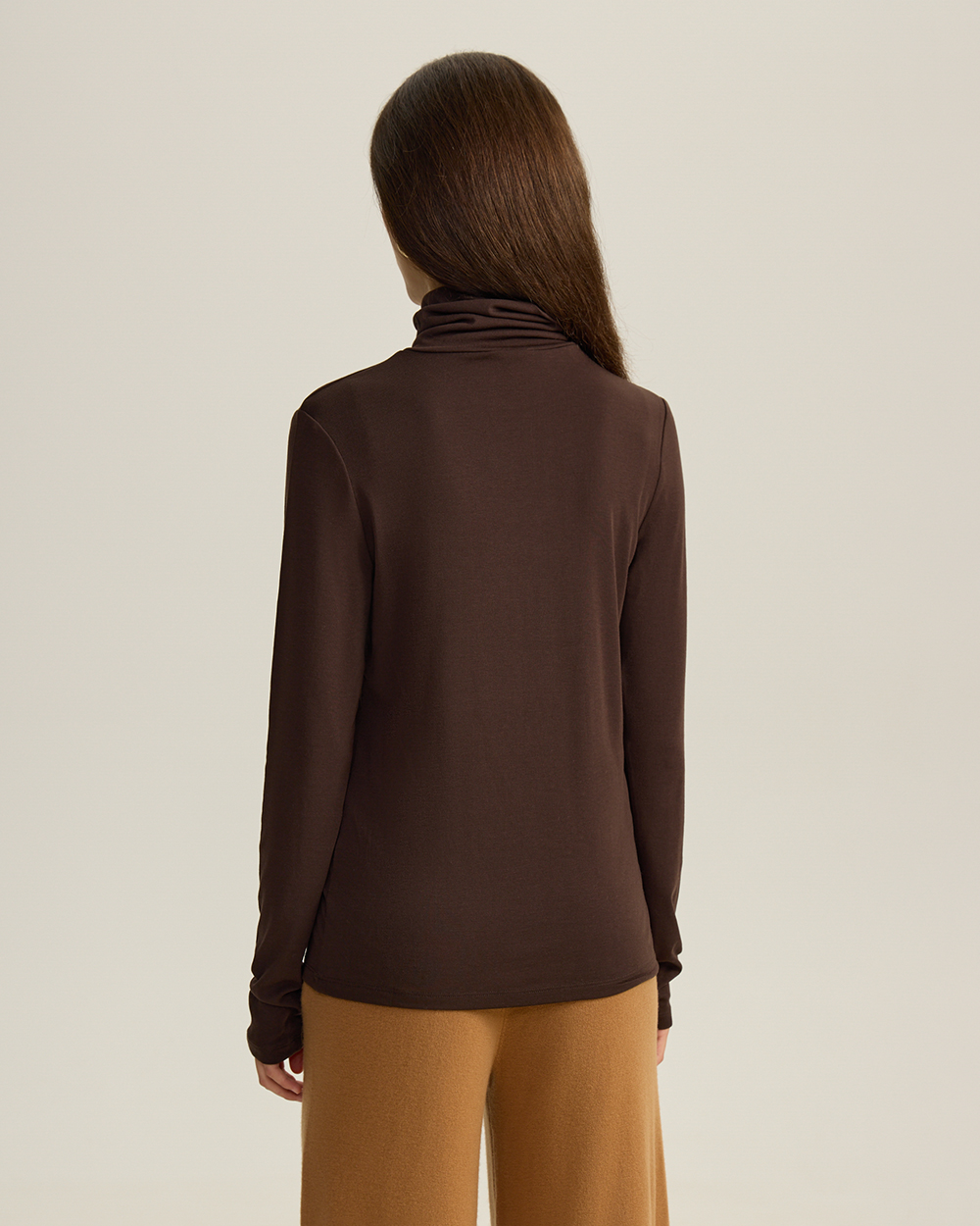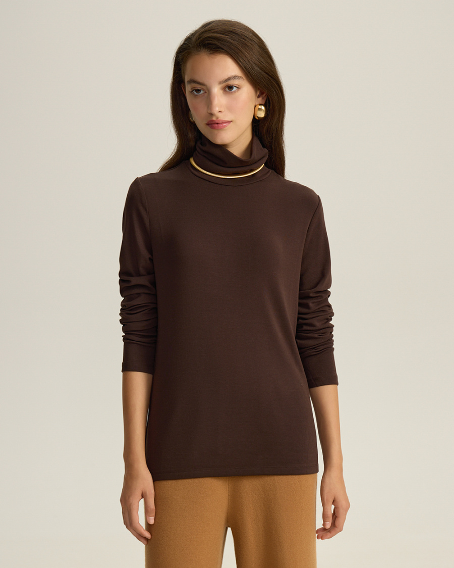 Тонкая водолазка из премиальной дышащей ткани на основе модала с добавлением шерсти.