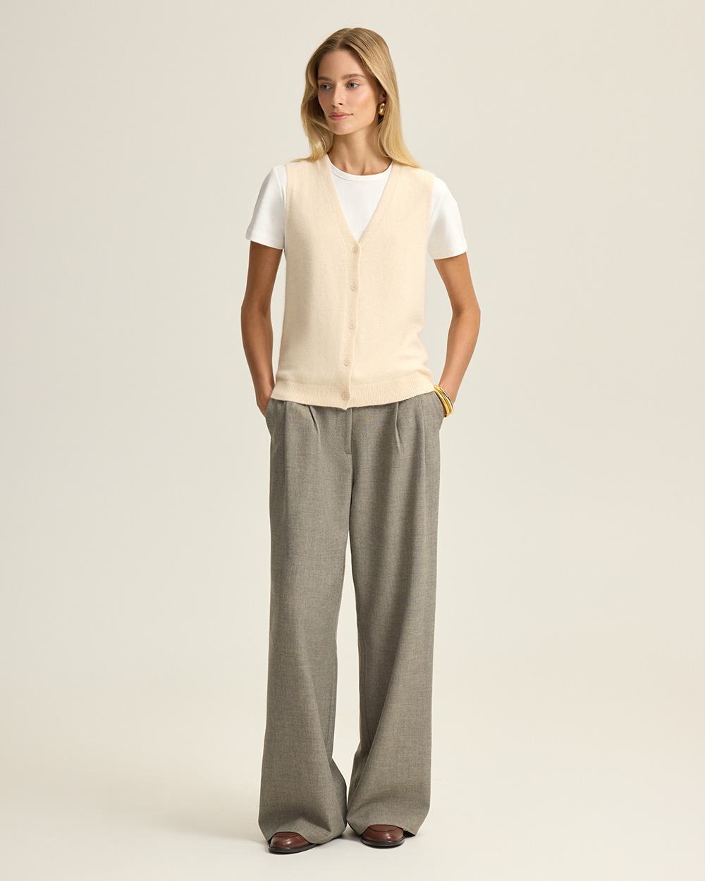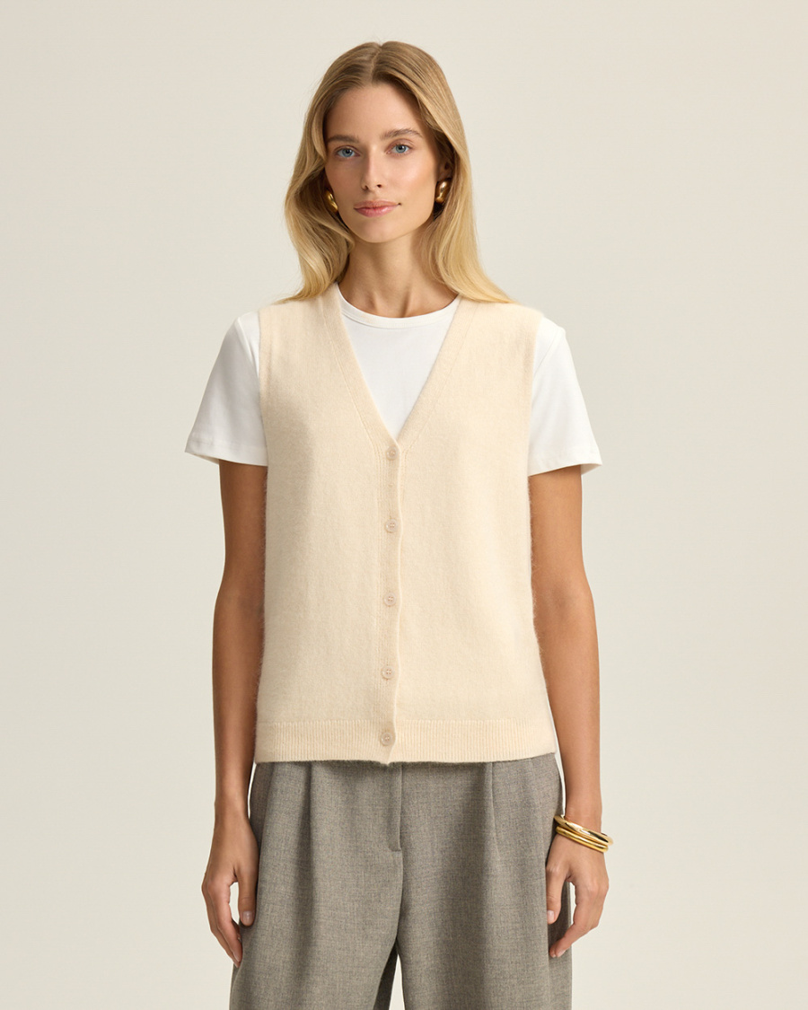 Жилет на пуговицах с шерстью ангоры, молочный