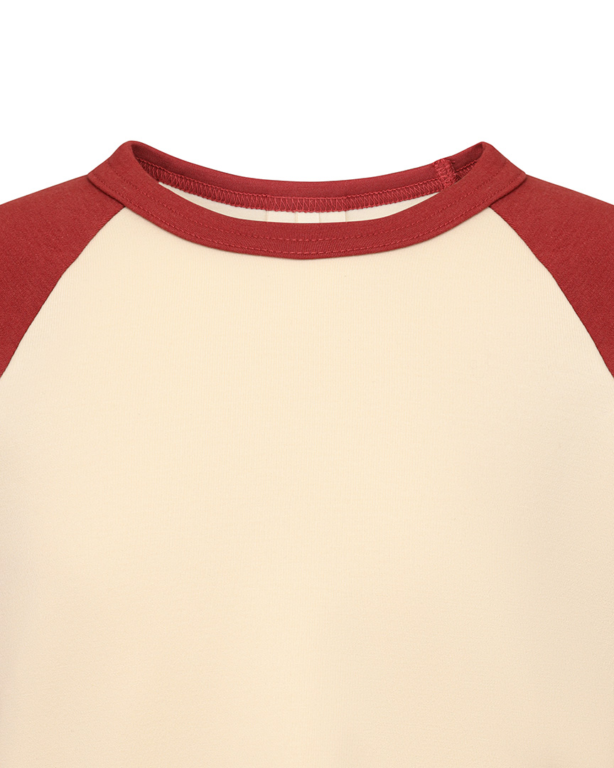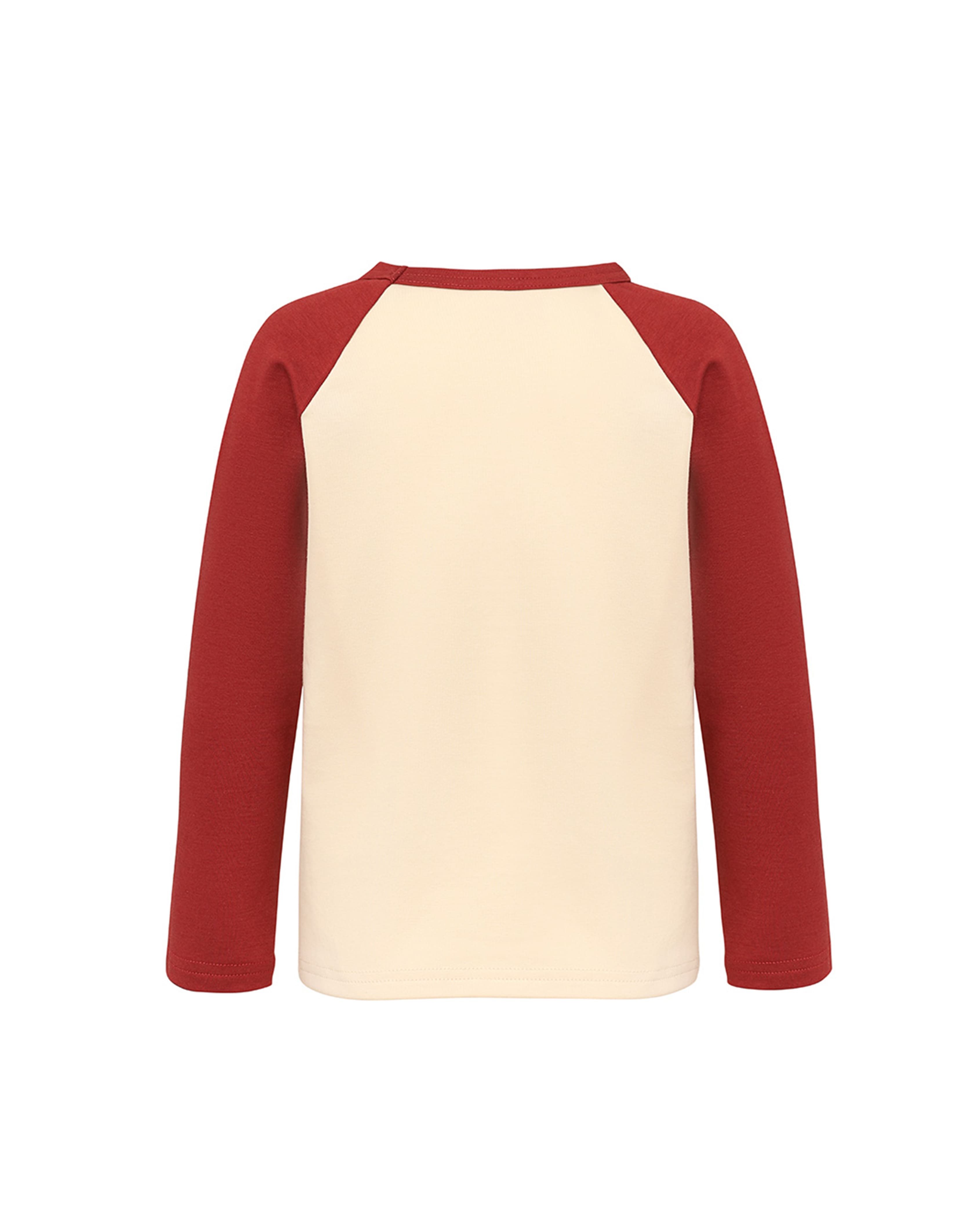Детский хлопковый лонгслив Unisex с контрастными рукавами, светло-бежевый, красный