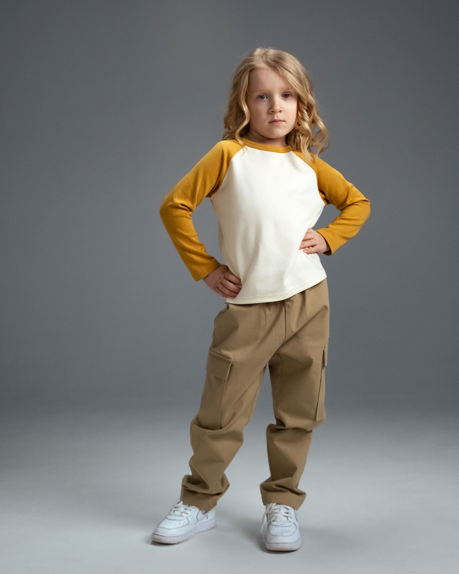 Детский хлопковый лонгслив Unisex с контрастными рукавами, светло-бежевый, желтый