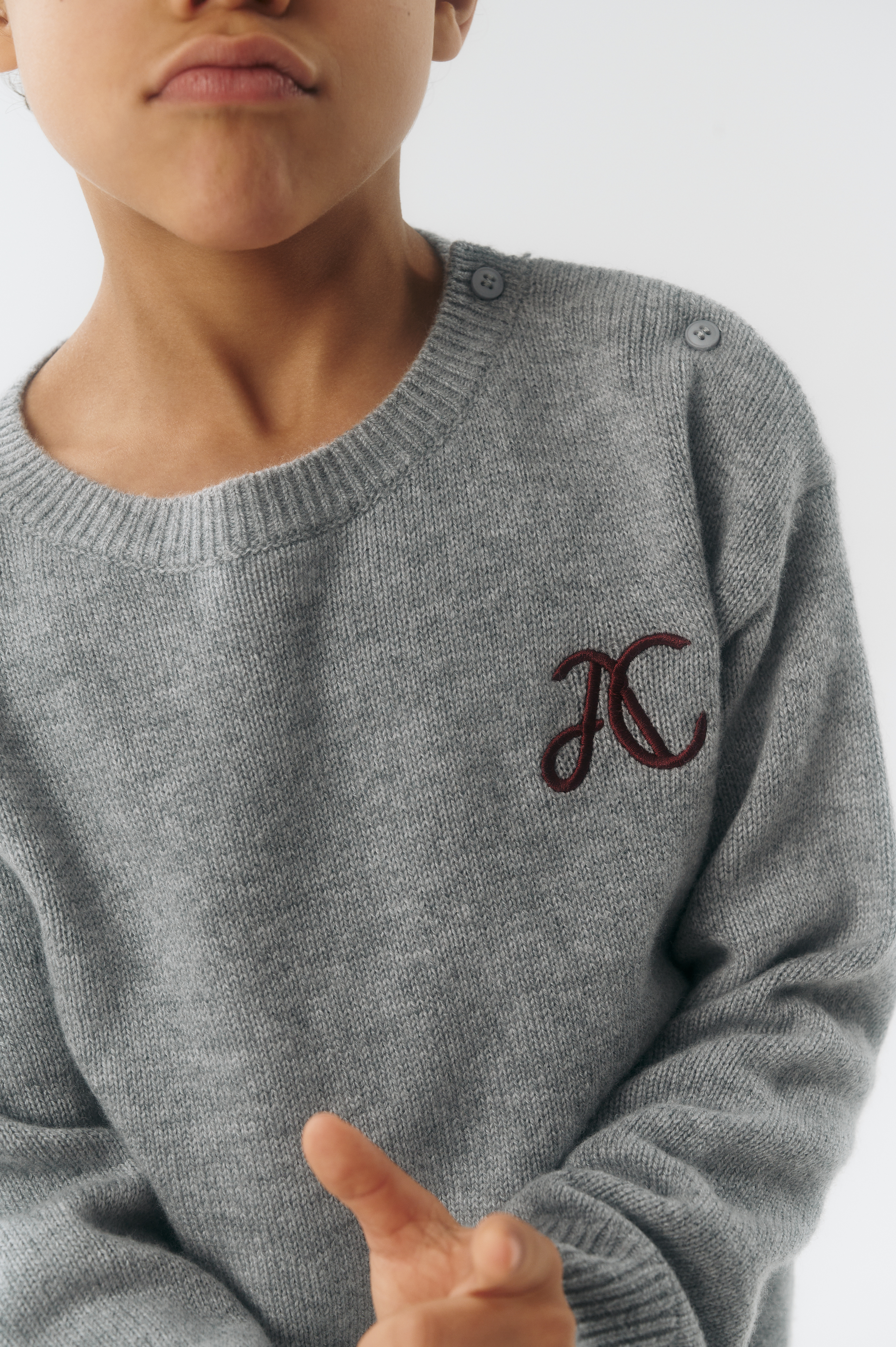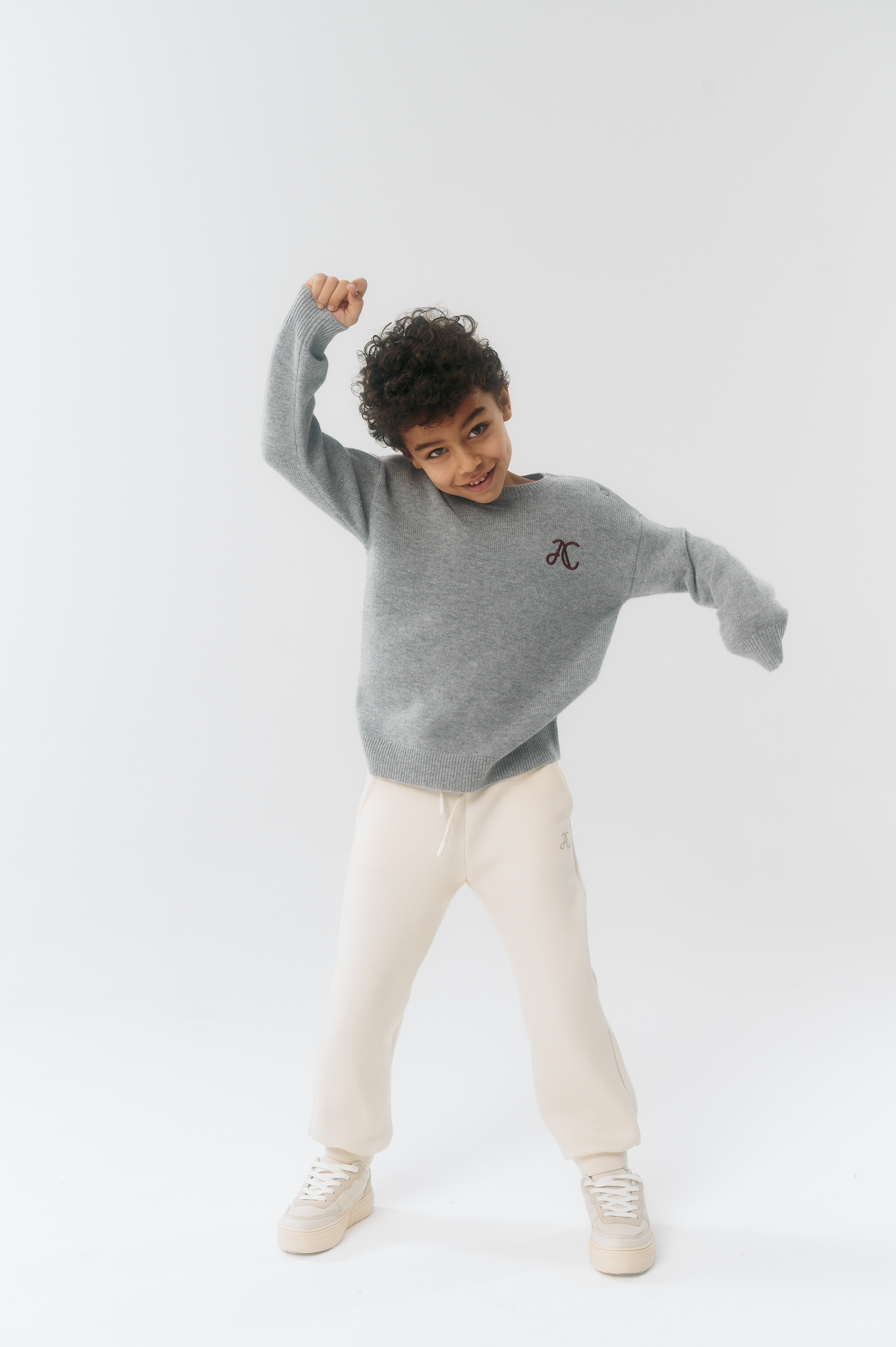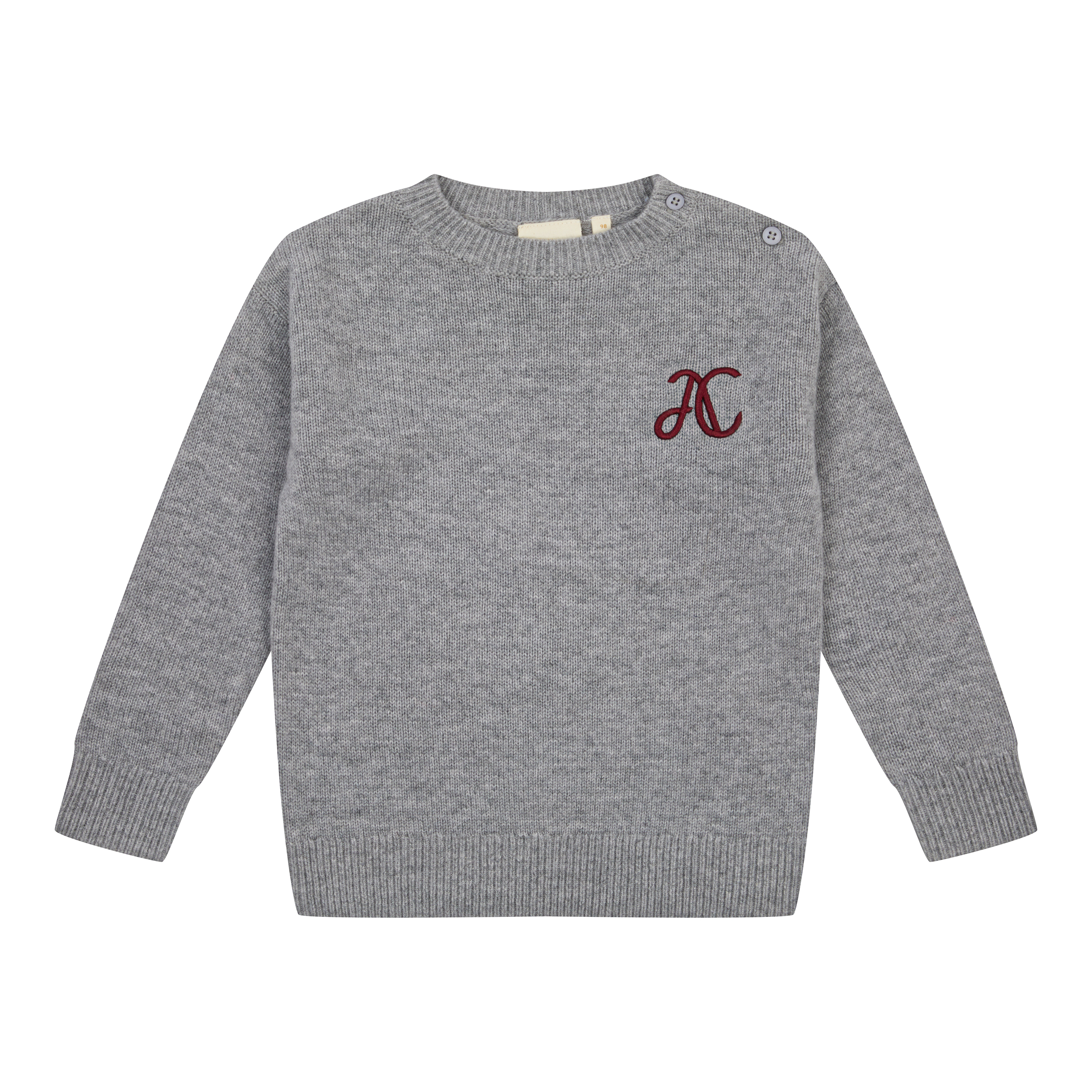 Детский вязаный джемпер из мягкого трикотажа из шерсти и кашемира. Круглый вырез, длинные рукава, эластичные края. Спереди вышивка AC (монограмма Abrau Club).