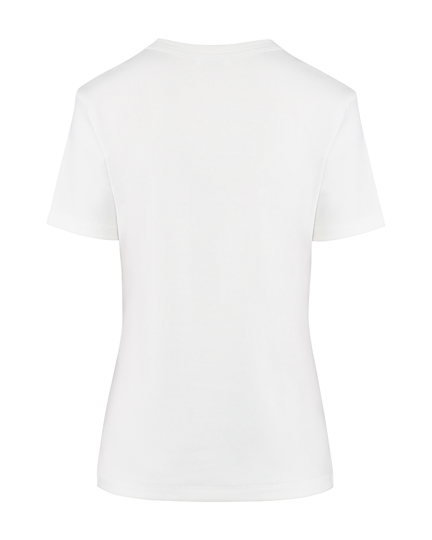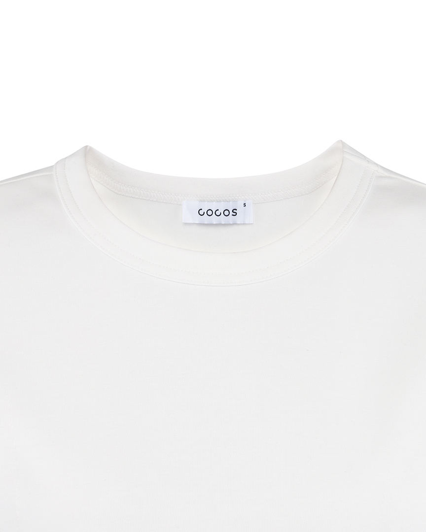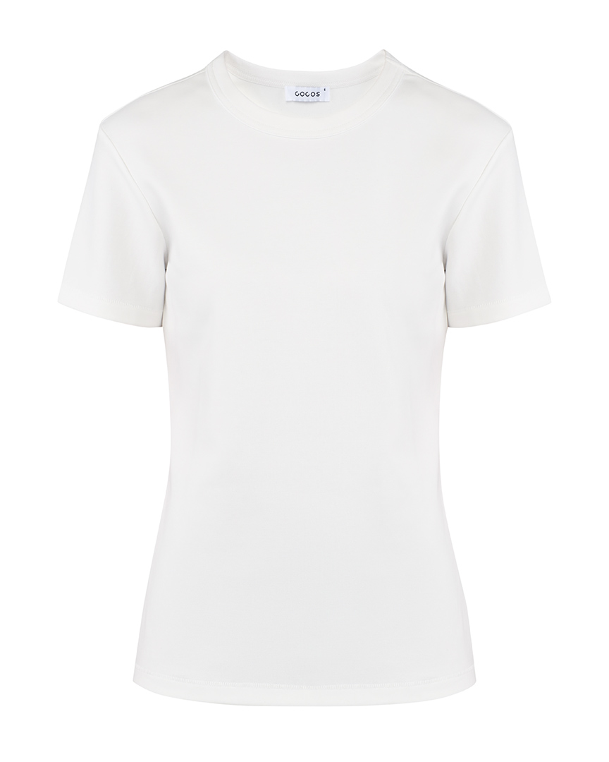 Футболка из эластичного хлопкового джерси. Круглый вырез. Короткие рукава. Футболка классической посадки, приталенного кроя, без оверсайз эффекта, с аккуратной линией ворота. Отлично подойдет как база под жакеты, кардиганы, рубашки, а также для тех самых многослойных сочетаний под джемперы и свитшоты, с воротником на молнии или без, когда контрастный ярко-белый край футболки выглядывает из-под ворота.