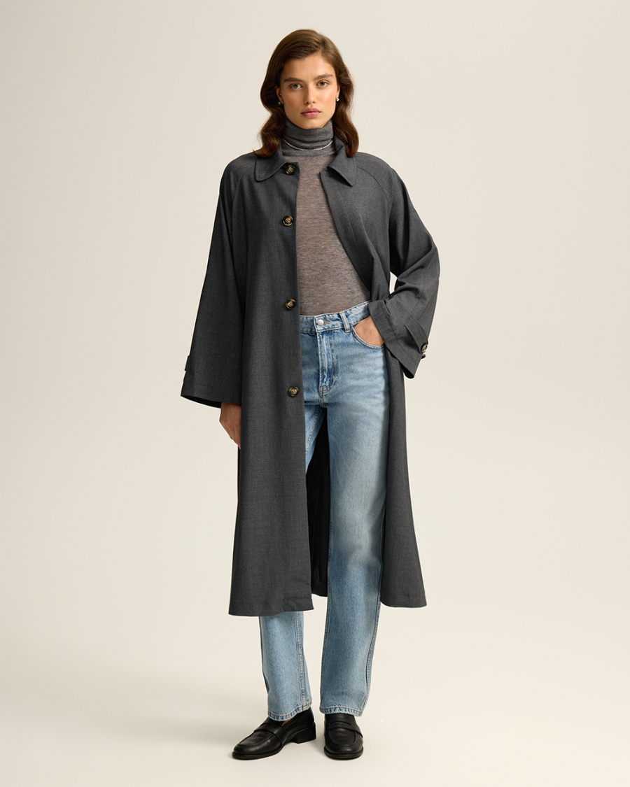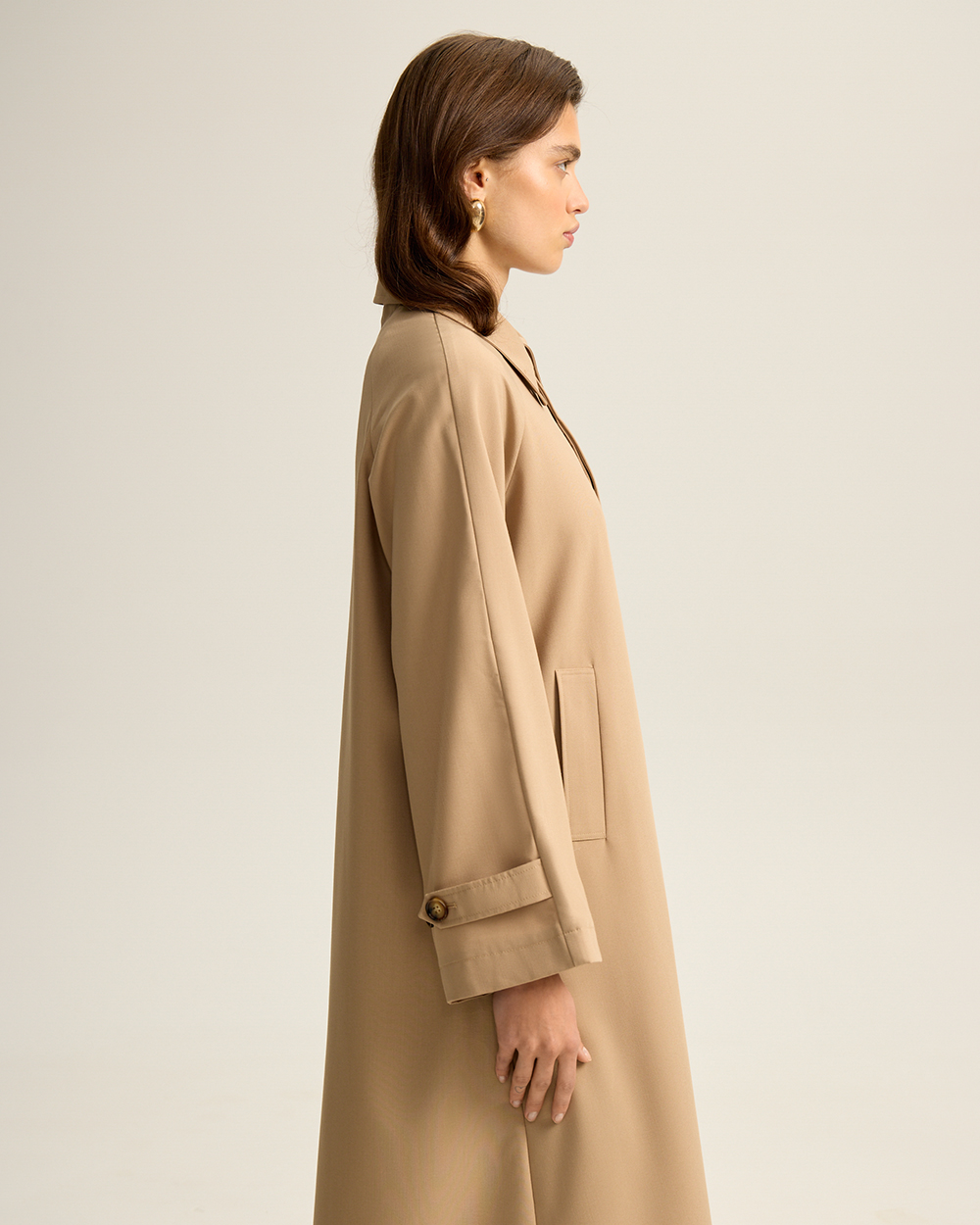 Легкий пыльник — это идеальная вещь на межсезонье, когда погода непредсказуемая и в любой момент может понадобиться набросить что-нибудь на плечи. К тому же однобортный пыльник актуальной длины в красивом универсальном бежевом оттенке будет отлично работать как стилеобразующий элемент, который эффектно дополнит даже самые лаконичные ваши образы из водолазки с джинсами.