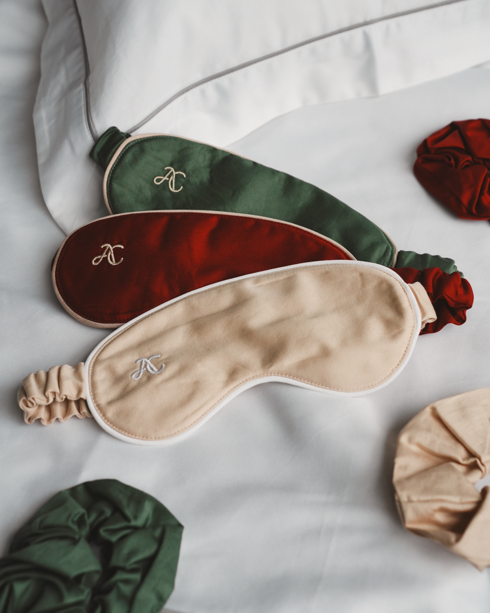 Маска для сна от Sleep area из хлопкового сатина. Нежная, шелковистая ткань не вызывает раздражения, гипоаллергенна, хорошо отводит влагу и обладает антибактериальными свойствами. В коллекции также представлены резинки для волос.