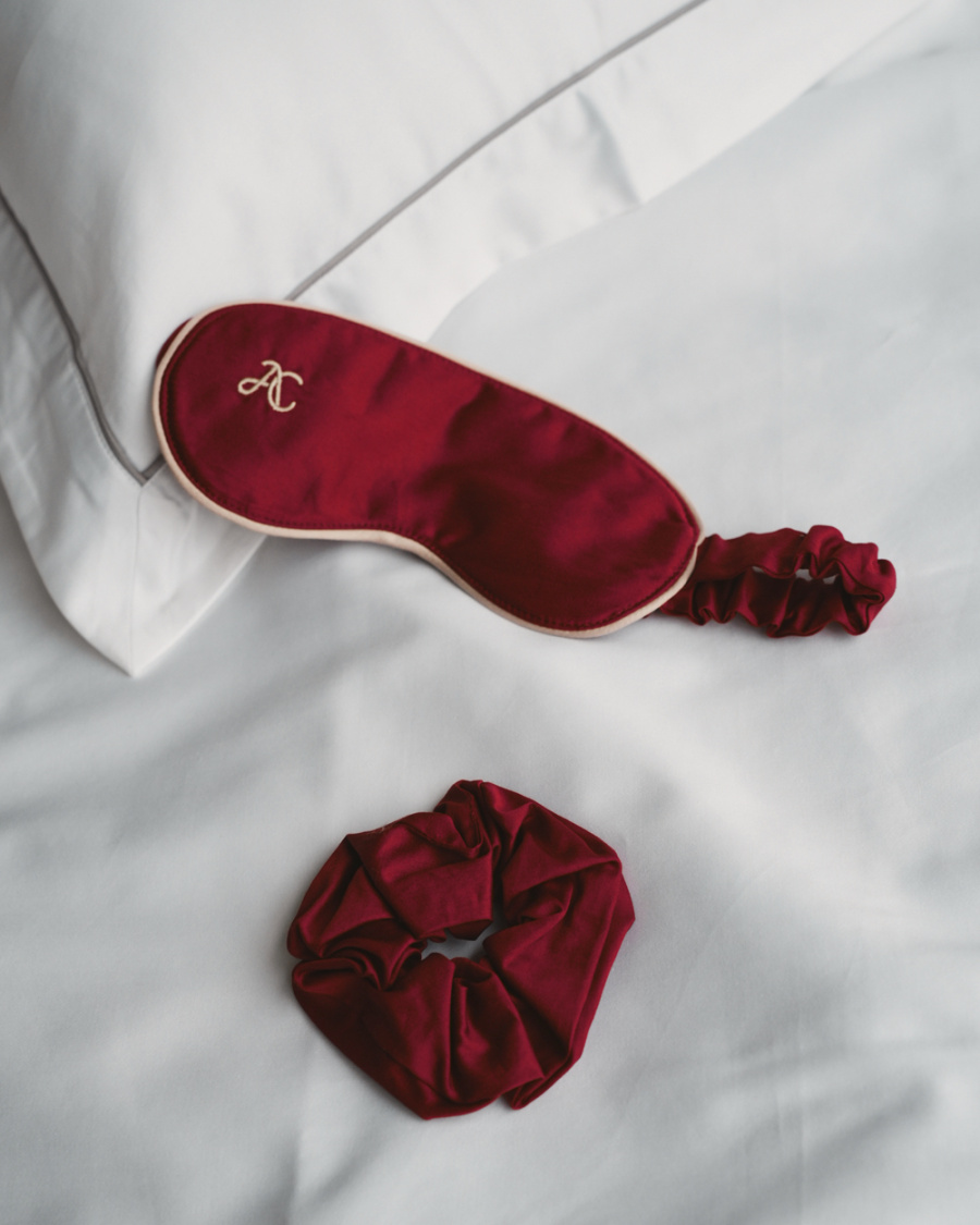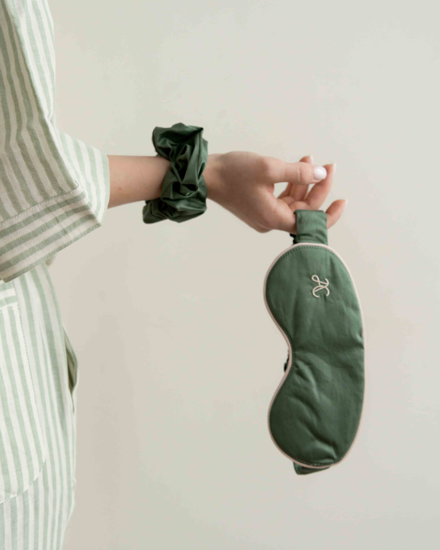 Маска для сна от Sleep area из хлопкового сатина. Нежная, шелковистая ткань не вызывает раздражения, гипоаллергенна, хорошо отводит влагу и обладает антибактериальными свойствами. В коллекции также представлены резинки для волос.