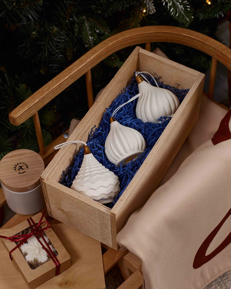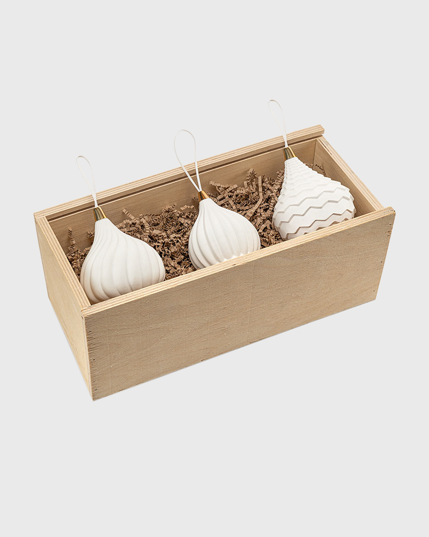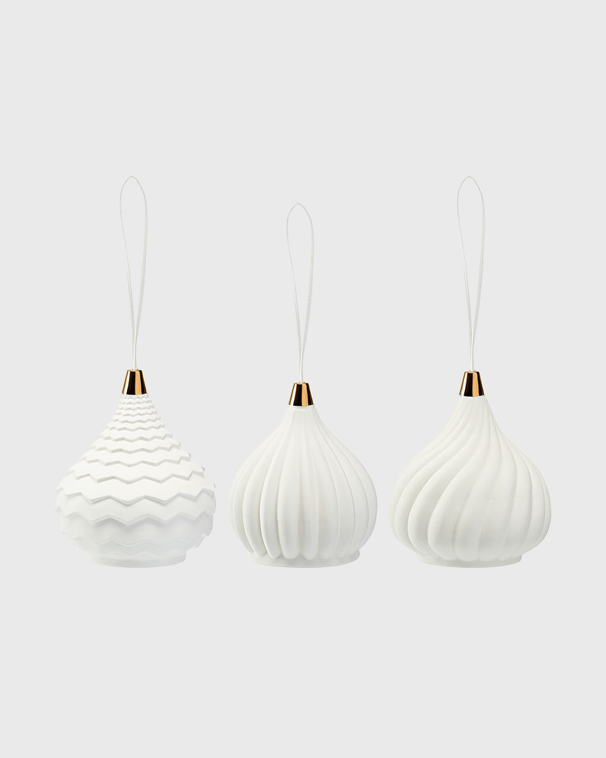 Набор лаконичных елочных игрушек "Три купола-бисквит" выполнен из французского лиможского фарфора. Особое благородство набору воздушных куполов добавляет приятная бархатистая текстура матового фарфора.