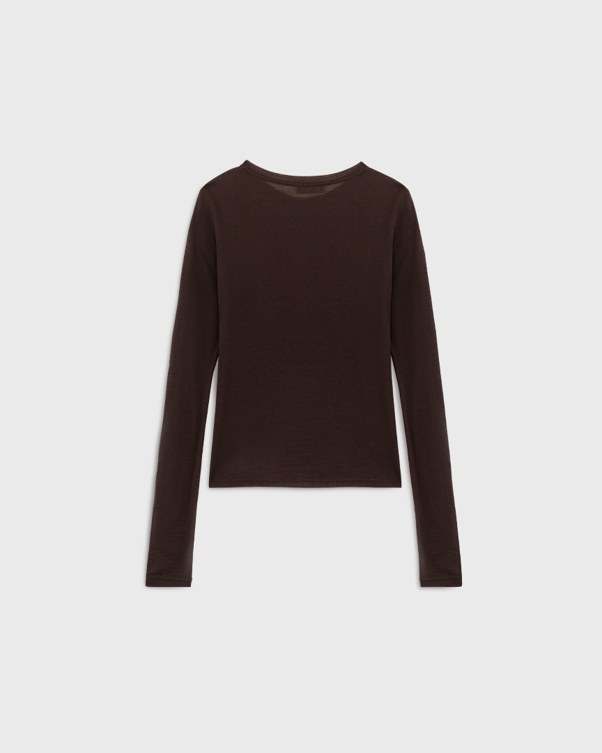 Прозрачный лонгслив из шерсти мериноса, коричневый шоколадный