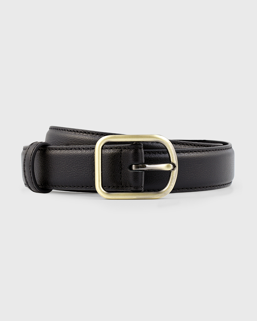 Ремень женский из высококачественной фактурной кожи, устойчивой к царапинам, черного цвета. С отделочной строчкой по краям. На гладкой, хорошо полированной кожаной подкладке в тон ремня. Тиснение монограммы Abrau Club на подкладке. Пряжка эксклюзивного цвета ""сатиновая бронза"" из цинкового нержавеющего сплава высшего качества. Ремень продается в фирменной упаковке (мешок-пыльник) с лого.