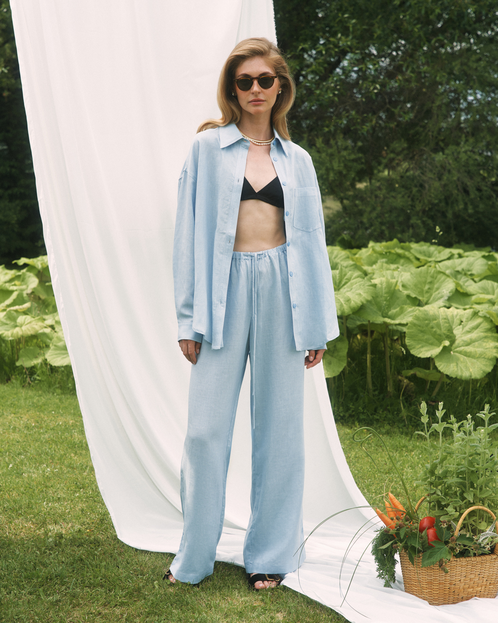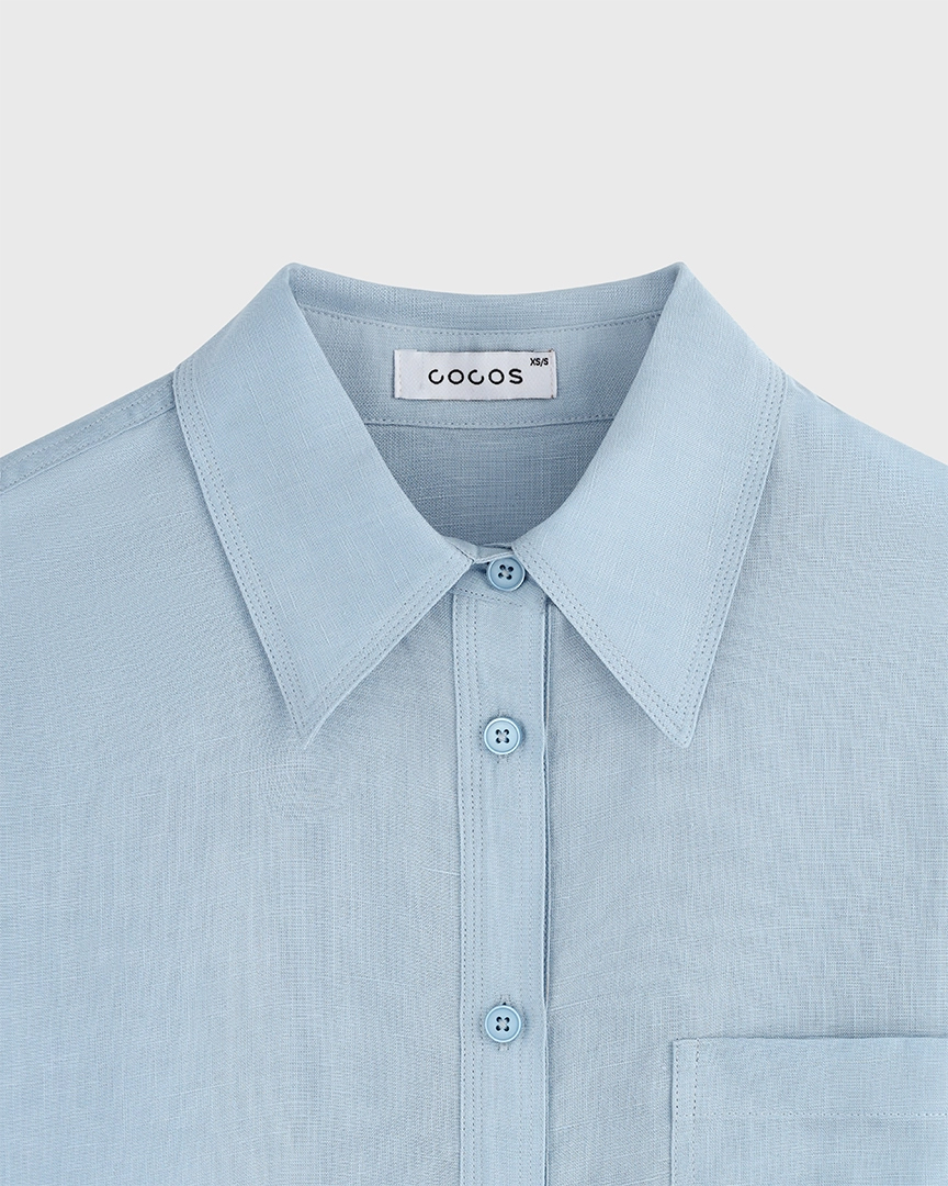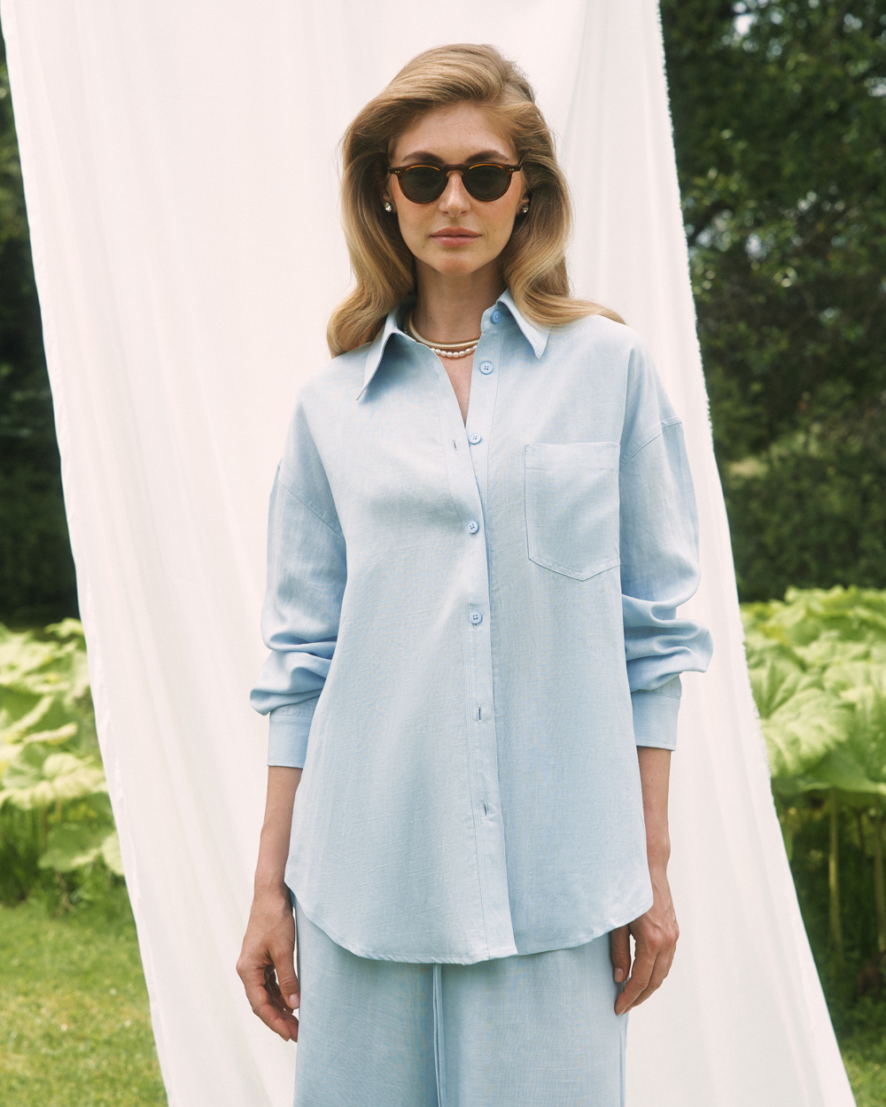 Рубашка оверсайз из тенселя и льна, небесно-голубой