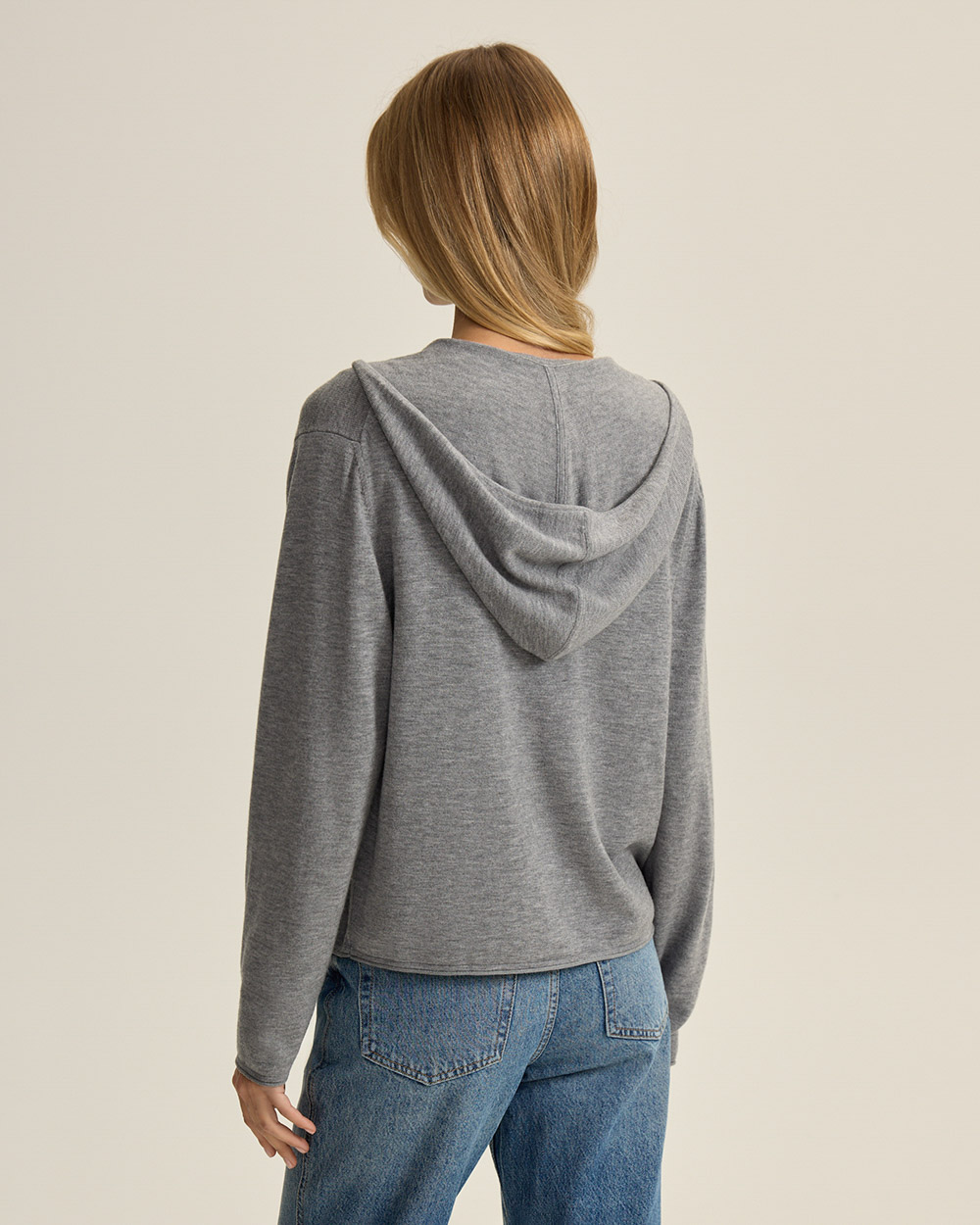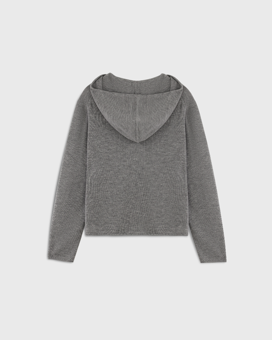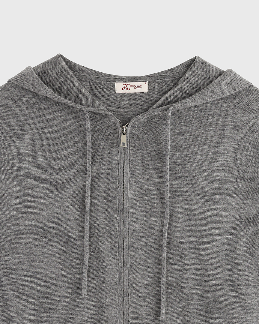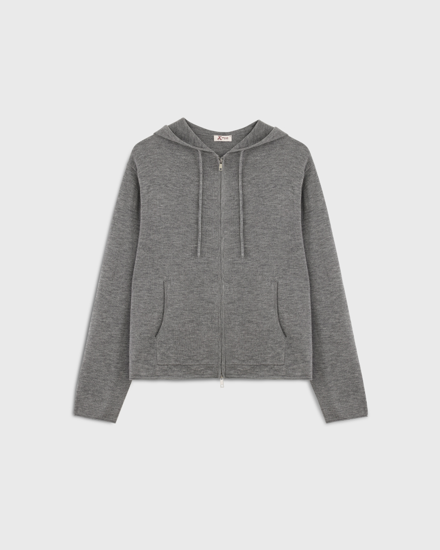 Шерстяной кардиган на молнии с капюшоном, серый меланж