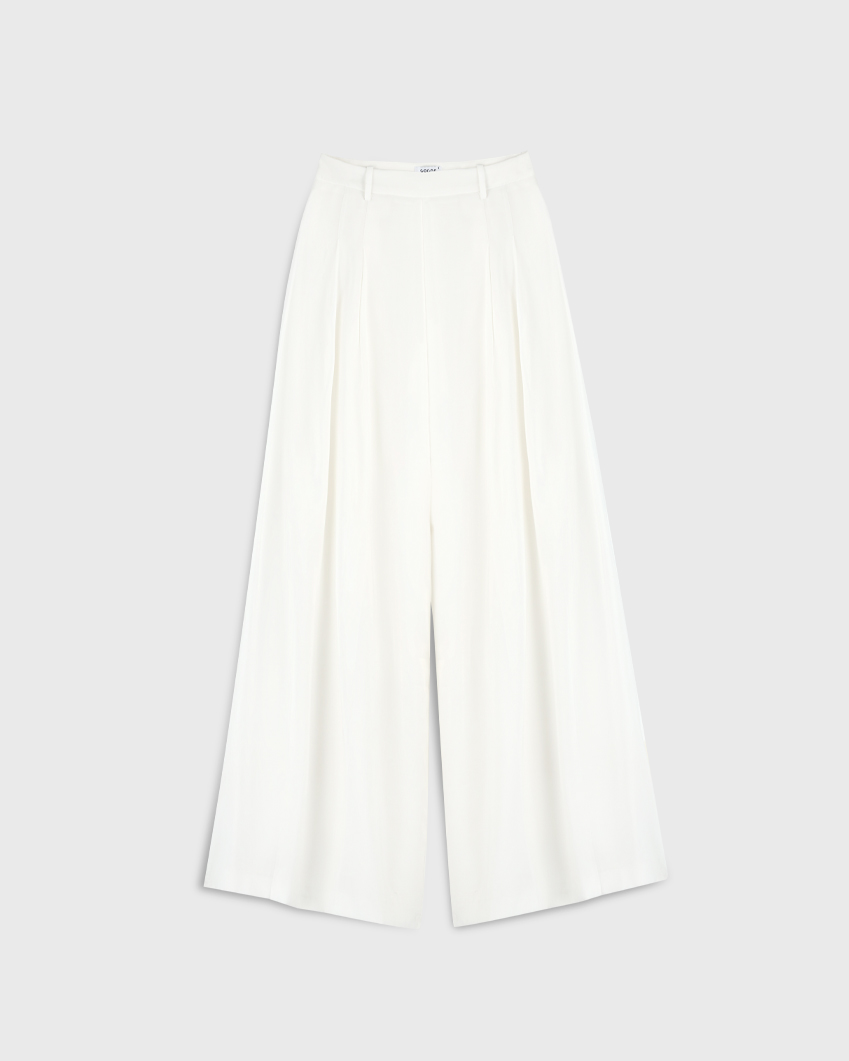 Широкие брюки палаццо с высокой посадкой, из тенселя, белый