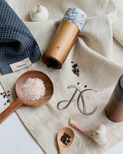 Скатерть из натурального льна, декорирована аккуратной тесьмой. Приятная на ощупь, гигроскопичная, эта скатерть не только практична благодаря свойствам льна, но и добавляет сервировке особый уют и тепло за счет фактуры и тактильности ткани.