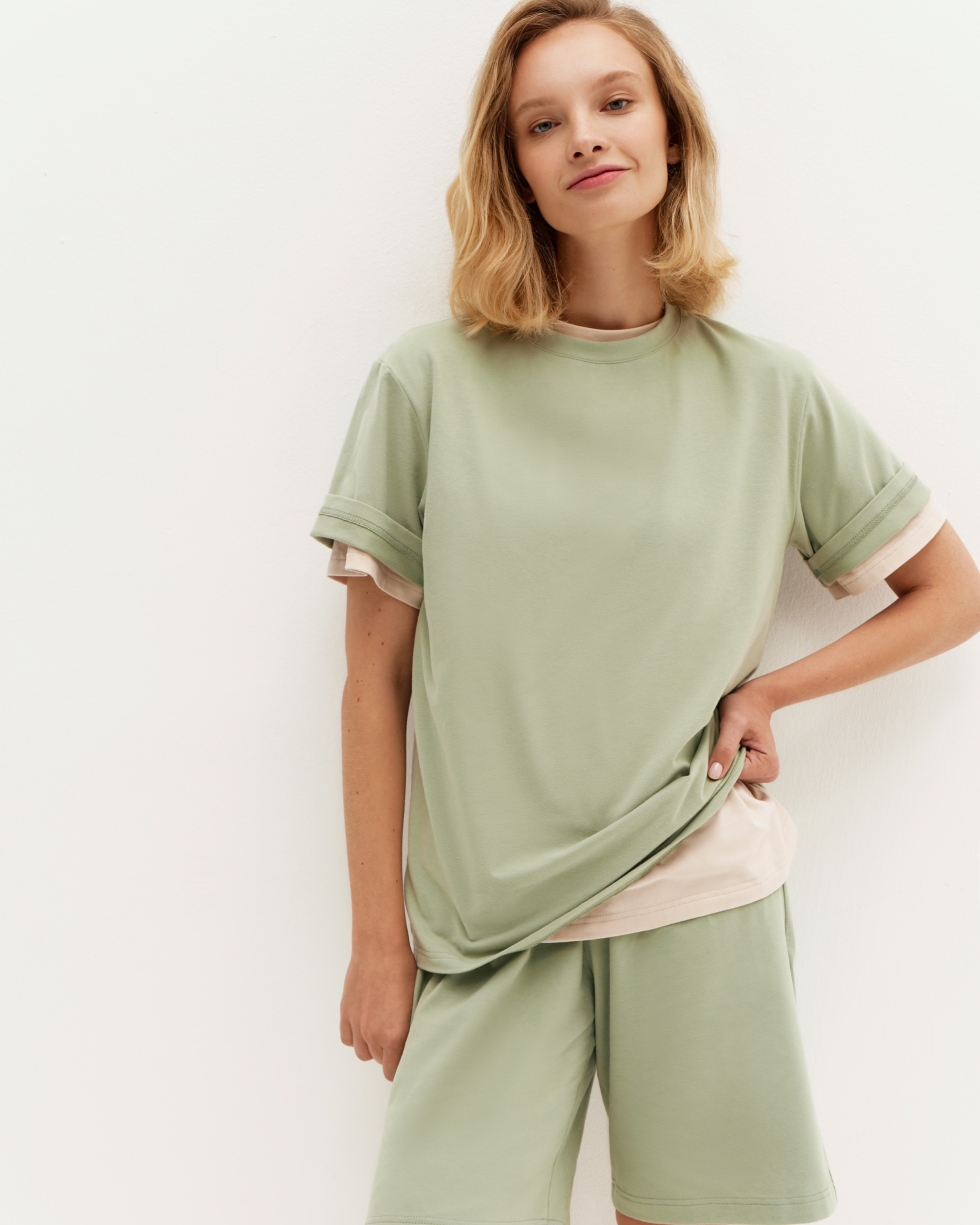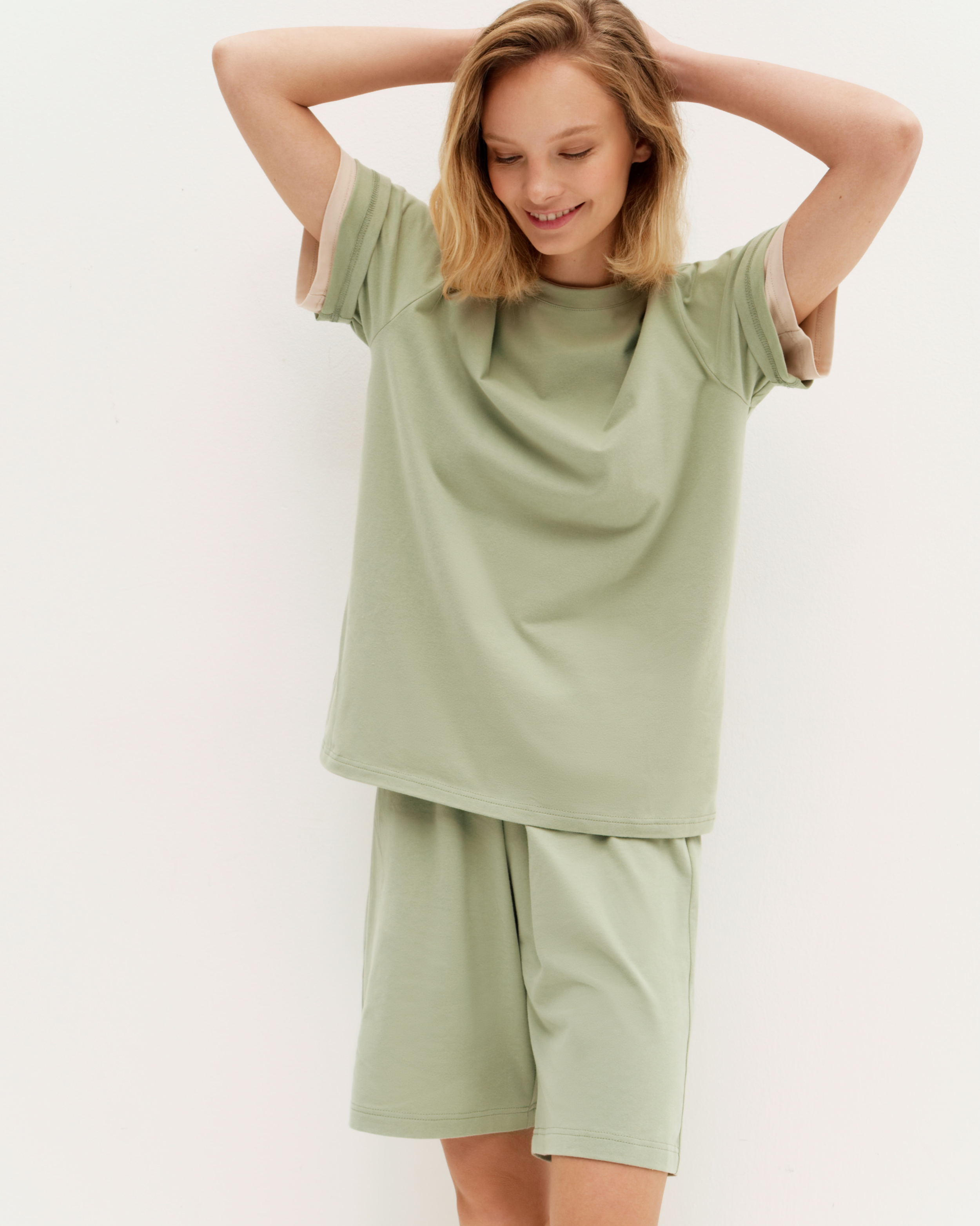Широкие рукава, обработанный рибаной вырез, который не будет растягиваться — в такой комфортно и дома, и на прогулке. Соберите комплект с шортами из нашей коллекции.