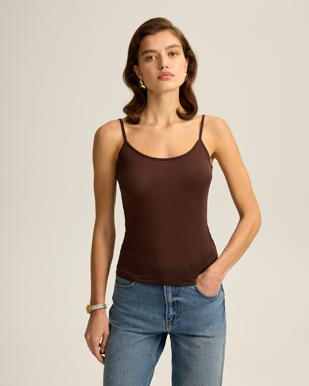 Топ на тонких бретелях, из лиоцелла, коричневый шоколадный