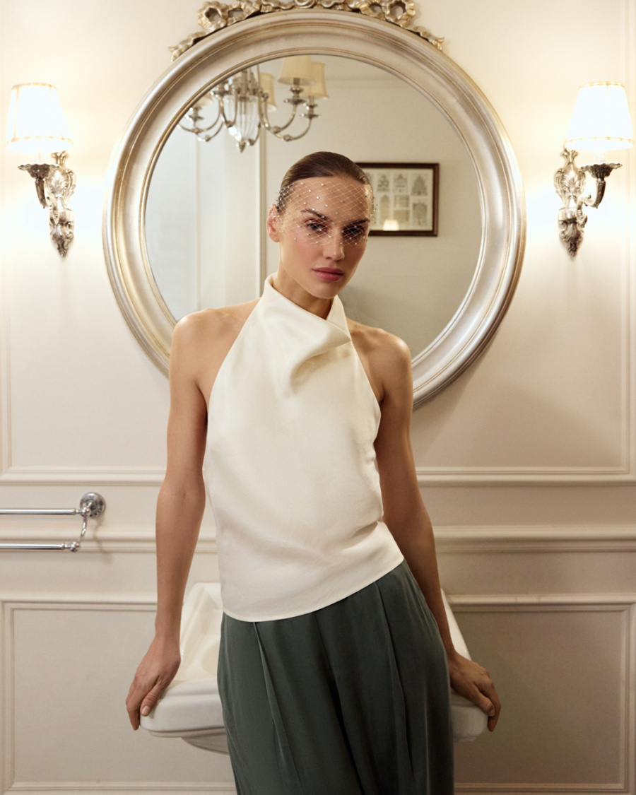 Идеально сочетается с расслабленными брюками из бархатистого полотна. Такой образ легко впишется в любую обстановку — будь то романтический ужин, торжественное мероприятие или уютный вечер с друзьями.