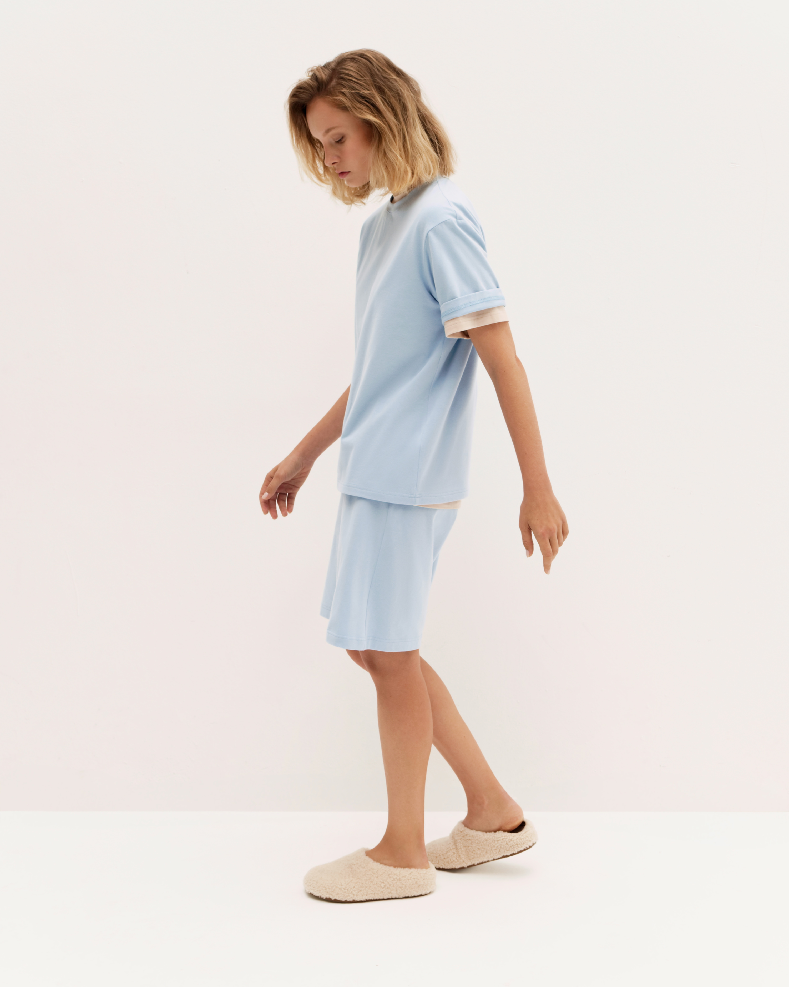 Трикотажные шорты из премиум-хлопка, с легким велюровым эффектом, голубой