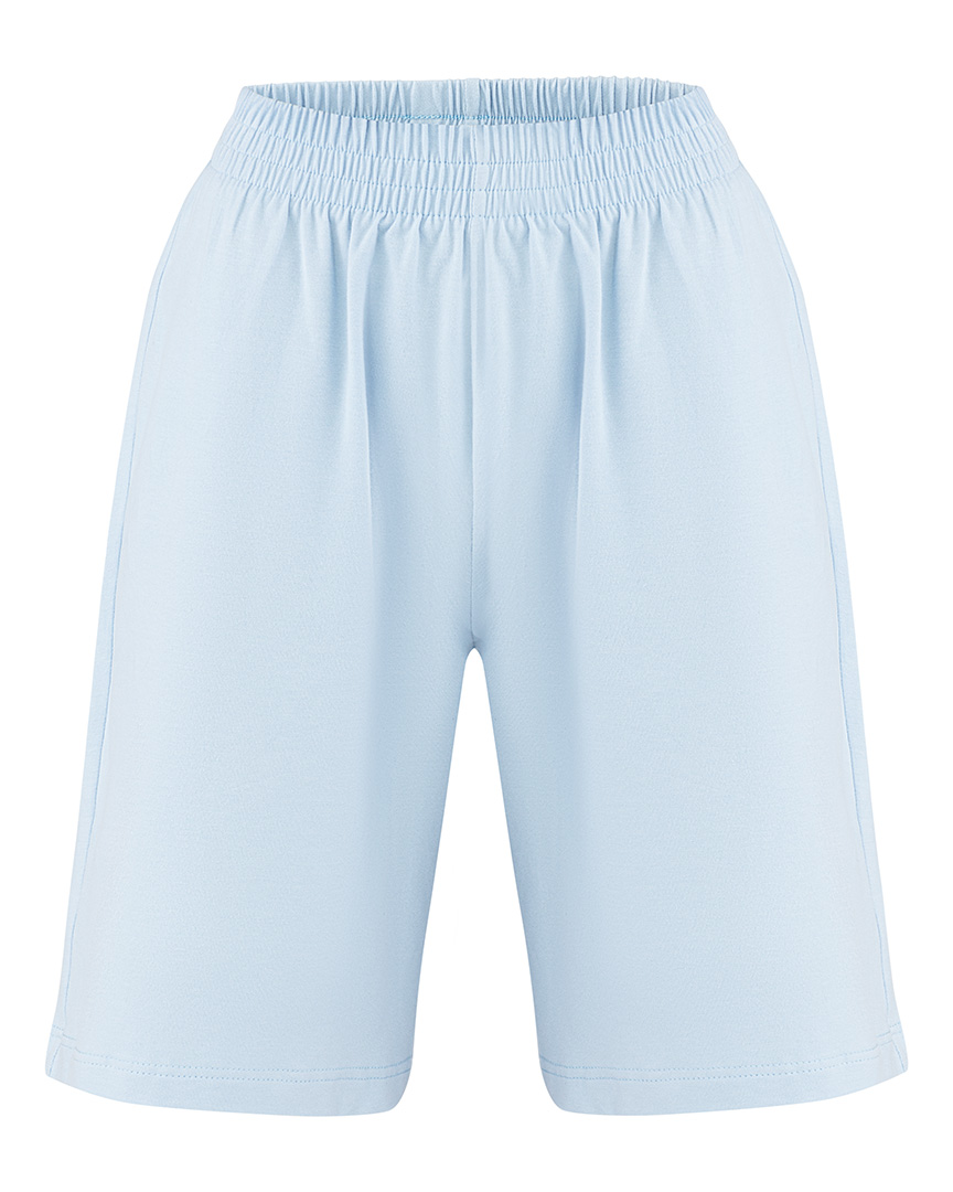 Свободные шорты с широким эластичным поясом — для отдыха дома или в путешествии. Соберите комплект с топом или футболкой из нашей коллекции. Очень мягкая и приятная к телу ткань из премиум хлопка с добавлением лайкры, с легким велюровым (peach) эффектом.