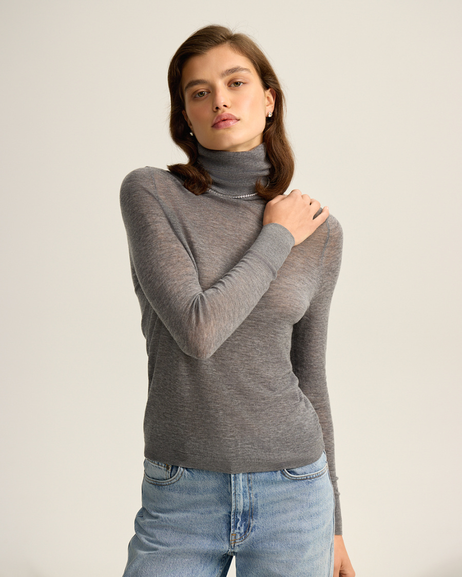 Водолазка из тонкой шерсти, серый меланж