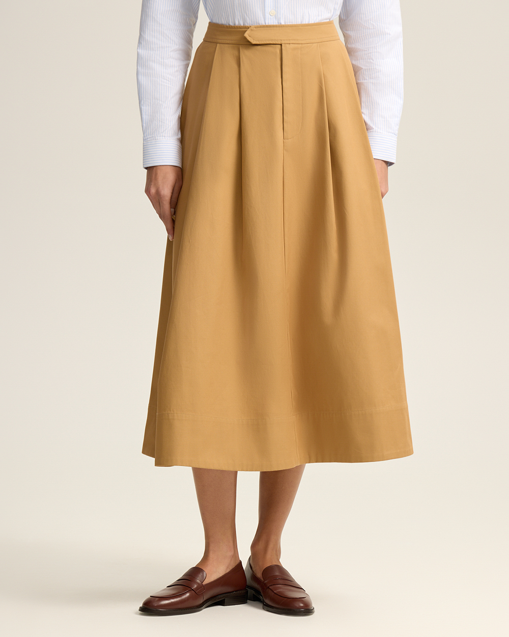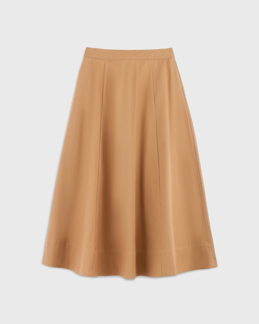 Однотонная юбка из комфортного хлопка с добавлением спандекса. Актуальная длина мидакси (ниже середины икры), посадка на талии и крой “солнце” создают женственный силуэт.