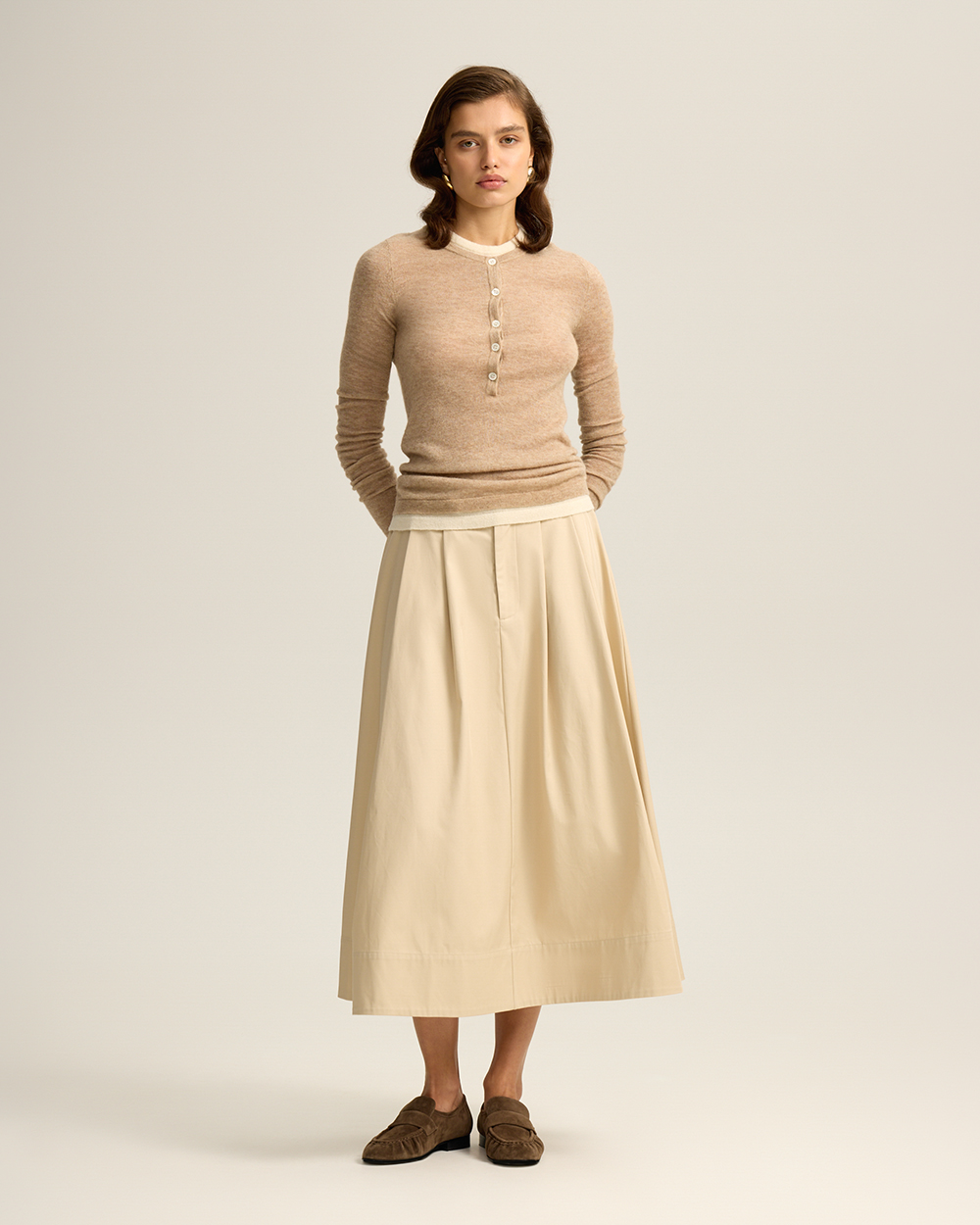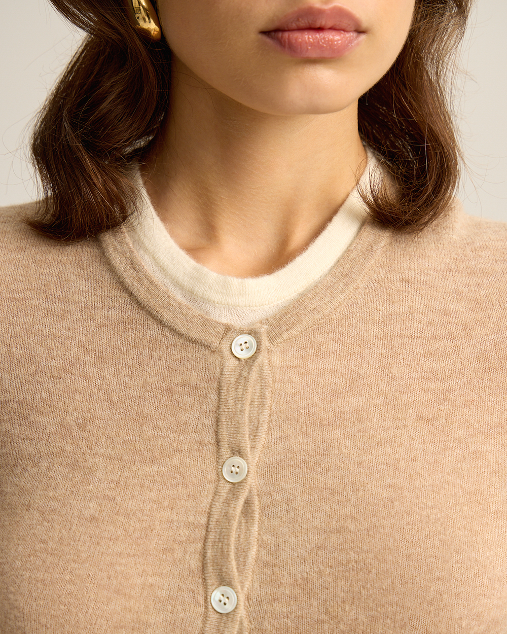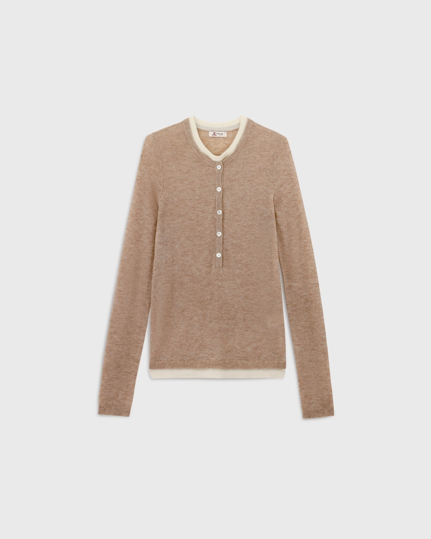 Шерстяной лонгслив на пуговицах, с эффектом многослойности, бежевый меланж