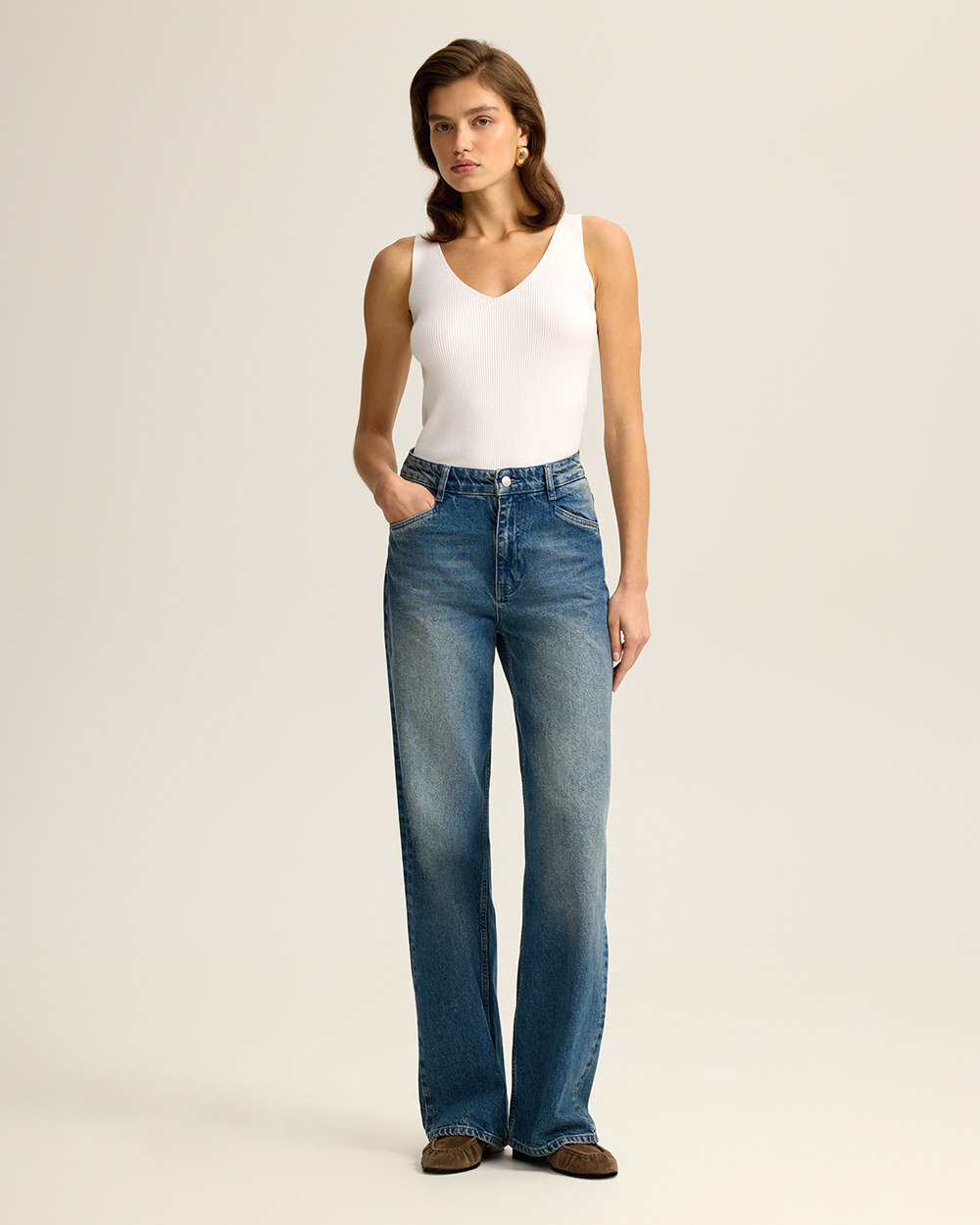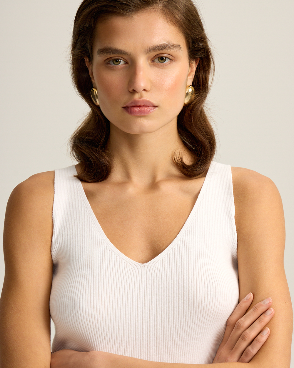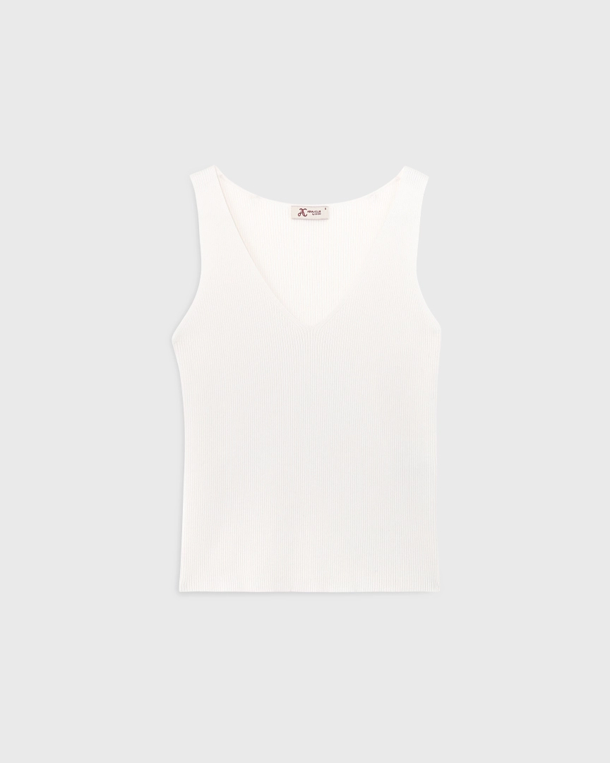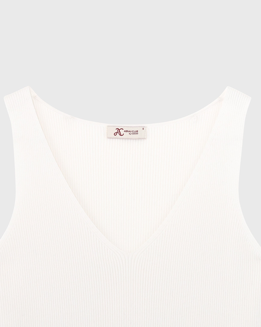 Трикотажный топ с V-вырезом, из хлопка и вискозы, молочный