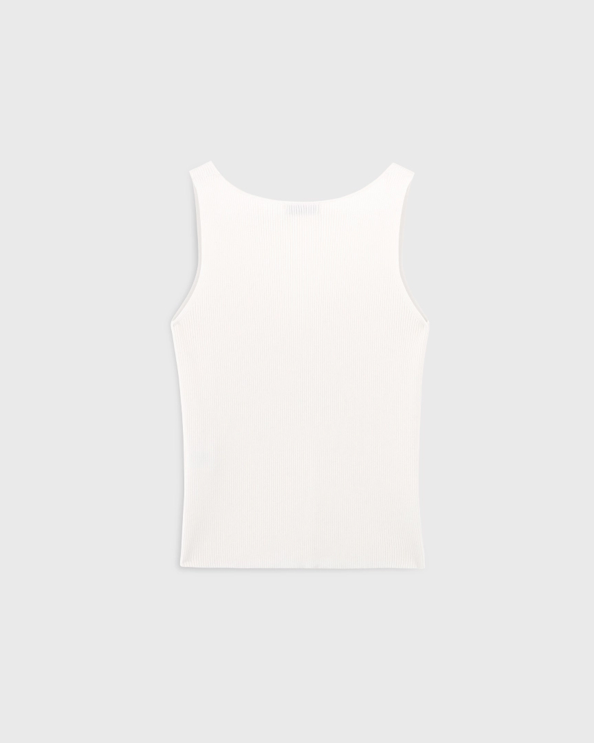 Топ из эластичного вязаного трикотажа в рубчик, из хлопка и вискозы. Приталенный крой, V-образный вырез.