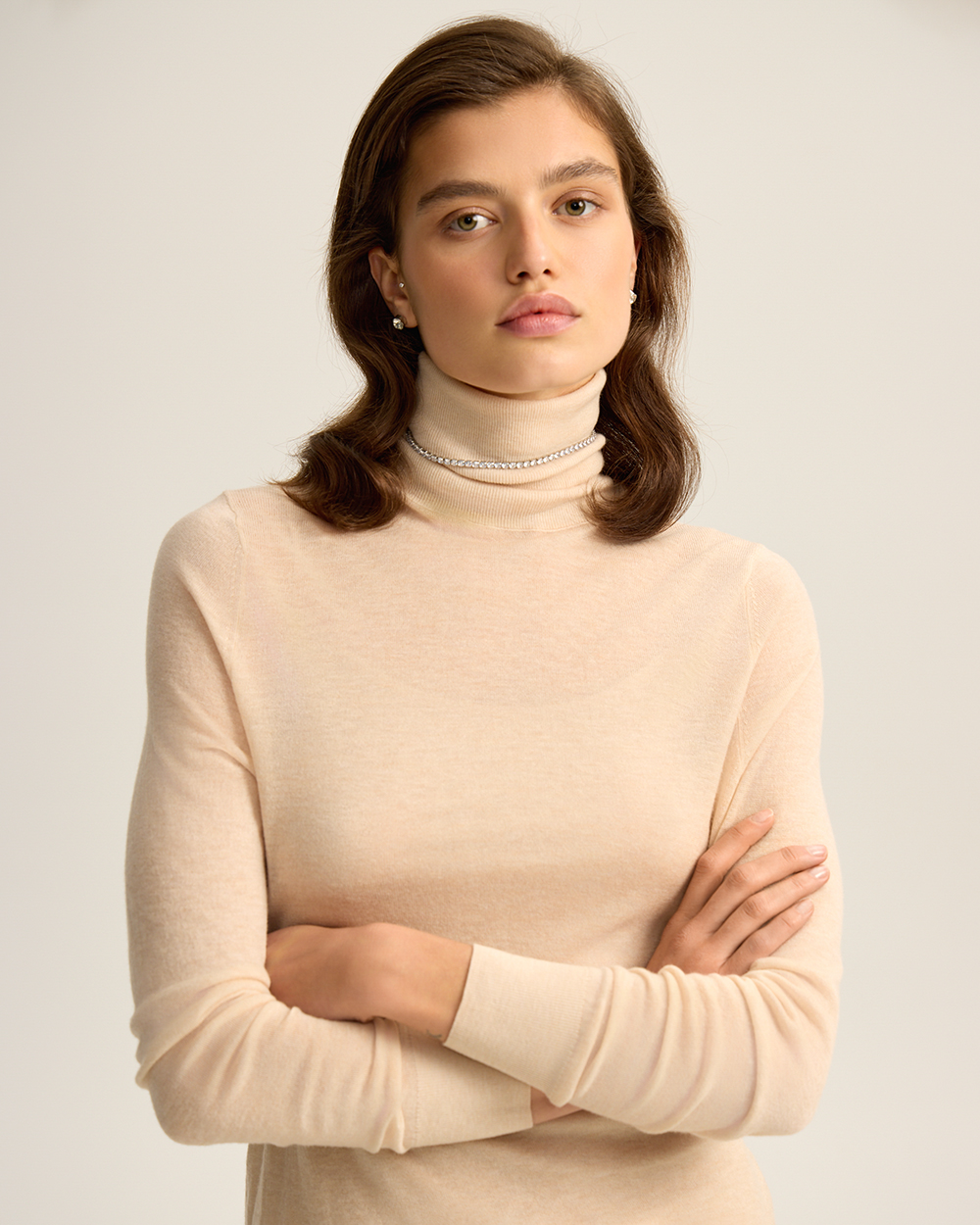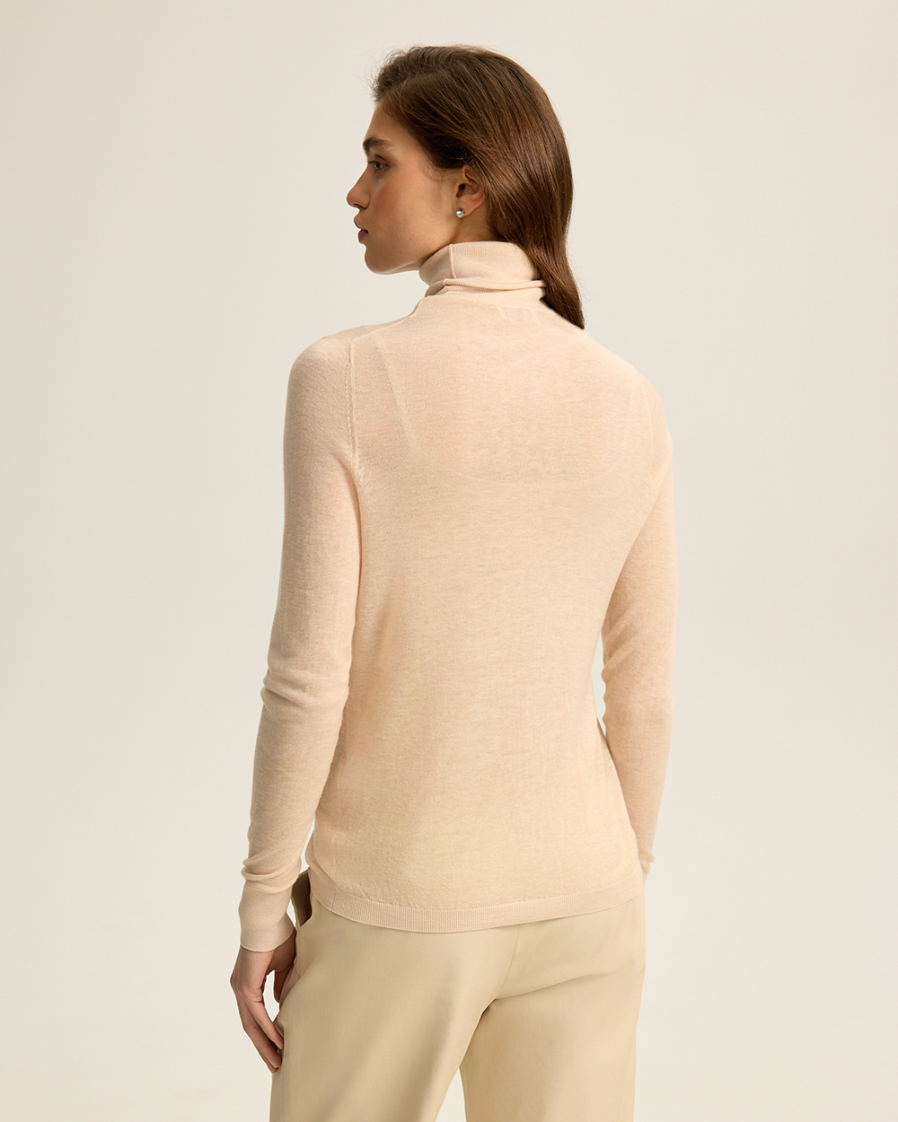 Водолазка из тонкой шерсти, светло-бежевый меланж